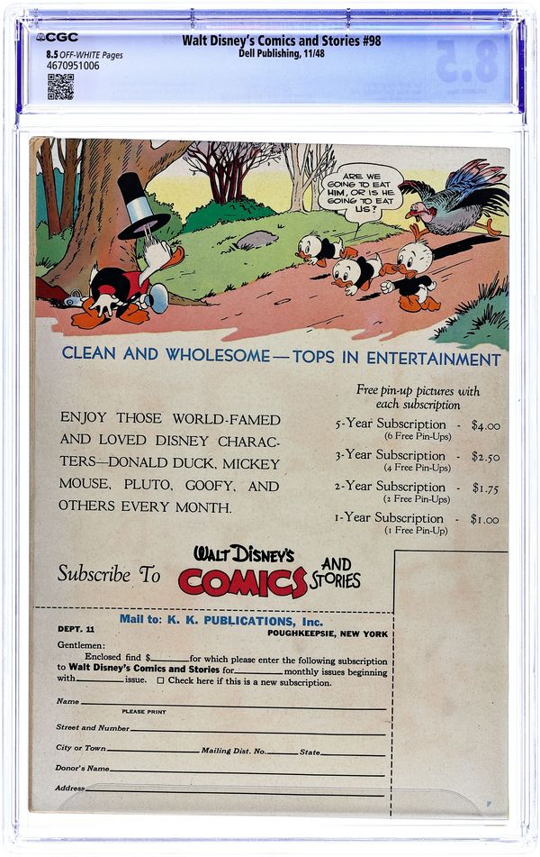 Walt Disney's Comics and Stories (1940 Dell/Gold Key/Gladstone) 98 graded by CGC