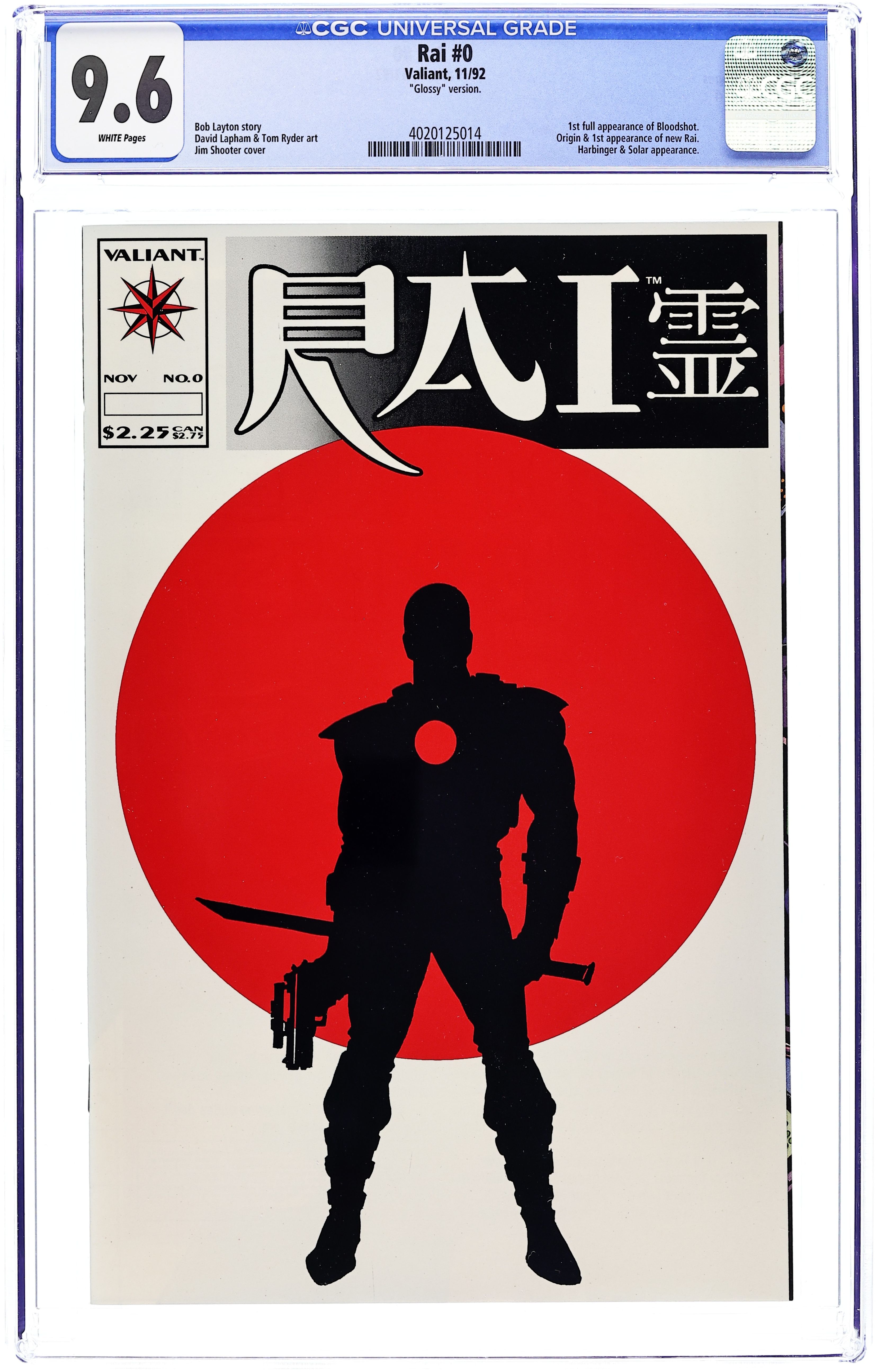 Origin and 1st full app of new Rai (Rising Spirit). Partial Origin and 1st full app of Bloodshot (1st cameo appearance occurred in Eternal Warrior #4). This issue does not have a card (coupon). In a tale that spans over 2000 years, a Geomancer tells the story of the blood of heroes and how it changed the course of history in "The Blood of Heroes." Plot by Jim Shooter, David Lapham, Bob Layton & Jon Hartz. Script by Layton, pencils by Lapham, inks by Tom Ryder. Cover price $2.25.