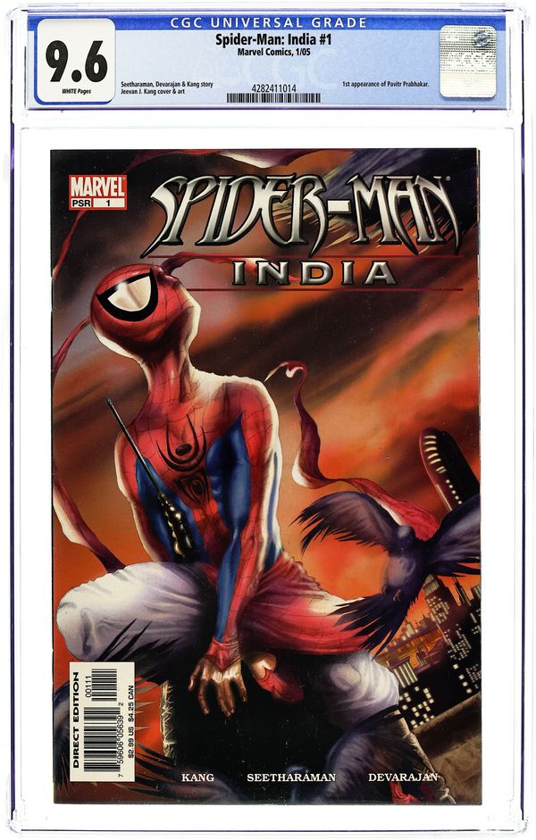 Written by Jeevan J. Kang, Suresh Seetharaman & Sharad Devarajan Art & Cover by Jeevan J. Kang Everybody knows the story of Spider-Man...but what if things had happened differently? What if it wasn't a New Yorker named Peter Parker, but an Indian teenager named Pavitr Prabhakar who was gifted with the abilities of the spider? Witness the rebirth of a legend as young Pavitr learns hard lessons about power...and responsibility. 32 PGS./ MARVEL PSR ...$2.99 UPC: 5960605639-00111 Cover price $2.99.