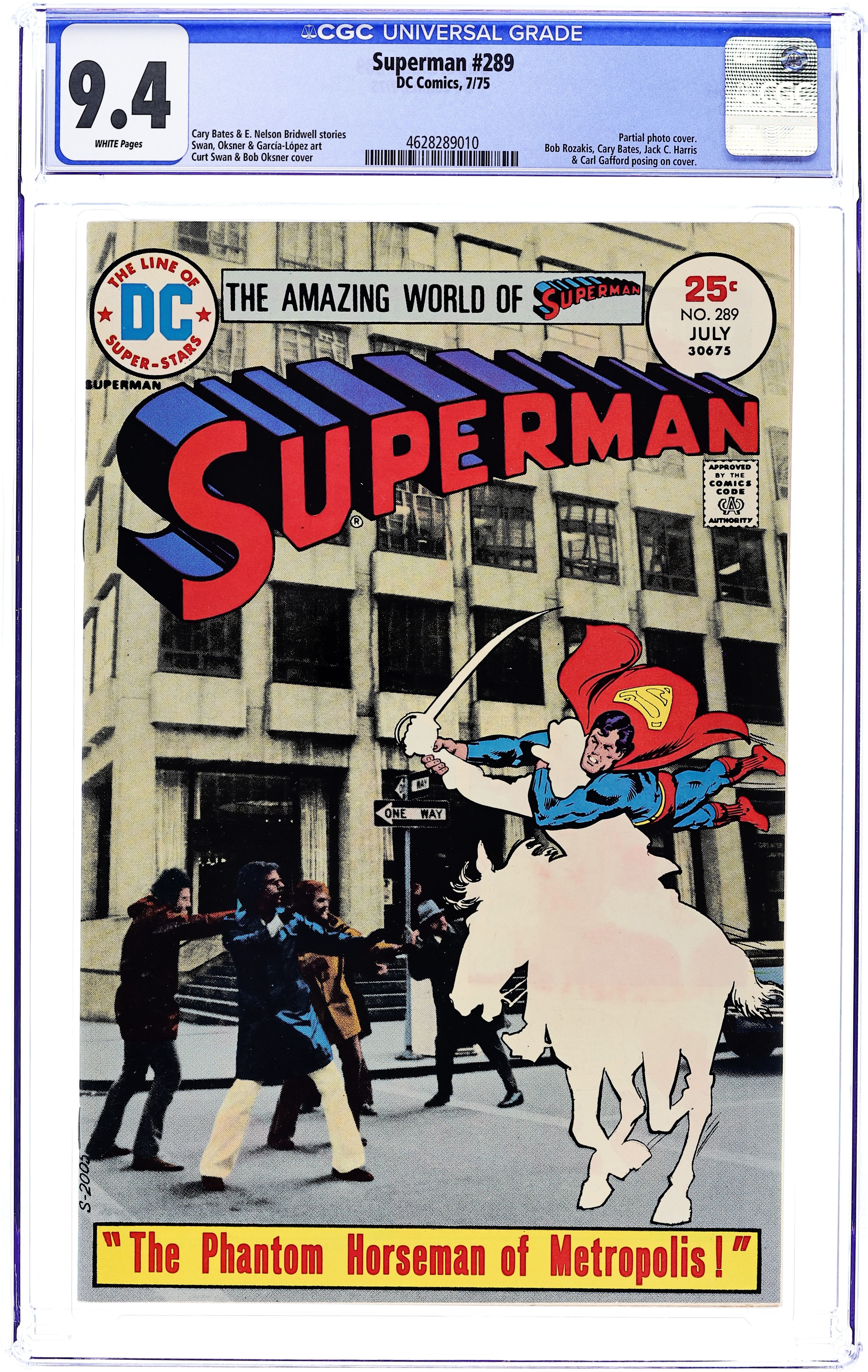 Cover pencils by Curt Swan, inks by Bob Oksner. The Phantom Horseman of Metropolis!, script by Cary Bates, pencils by Curt Swan, inks by Bob Oksner; Superman must confront Professor Pepperwinkle, who creates tangible silhouettes of TV images. Right Down My Alley!--Private Life of Clark Kent, script by E. Nelson Bridwell, pencils by Curt Swan, inks by Jose Luis Garcia-Lopez; Clark bowls without super powers. 36 Pages, Full Color. Cover price $0.25.