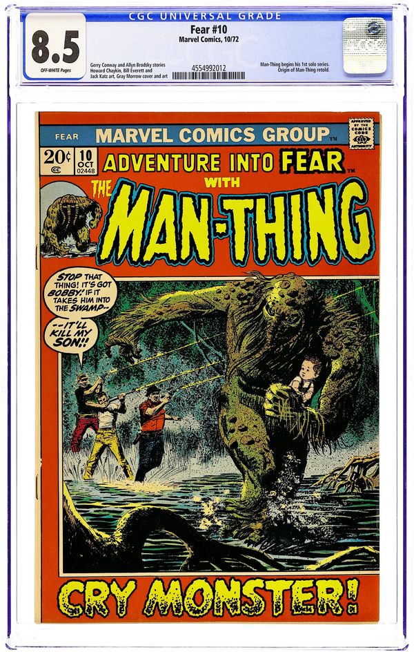 Ends Dec 8 8:22 PM CST Bid History 8 bids Current Bid $34 Your Secret Max Bid If you'd like to bid, please log in or register. Cover art by Gray Morrow. "Man-Thing!", script by Gerry Conway, pencils by Howard Chaykin, inks by Gray Morrow; The Man-Thing discovers an infant being abandoned in the swamp, prompting it to seek retribution for the heinous act. "The Spell of the Sea Witch!" starring Iron Man, Thor and Captain America, script by Allyn Brodsky, pencils by Jack Katz (as "Jay Hawk"), inks by Bill Everett (as "Black Bill"). "There Is Something Strange About Mister Jones!", art by Don Heck; A thug hears a man say that he has a fortune in his locker. He attacks him and tries to make him lead him there. His victim is Davy Jones, and he shows the thief his locker by drowning him. 36 pgs., full color. Cover price $0.20.