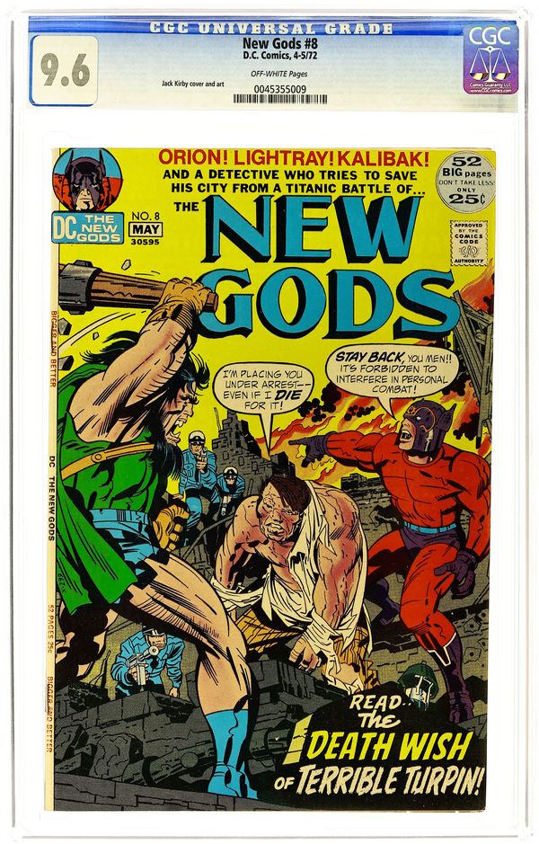 Cover pencils by Jack Kirby, inks by Mike Royer. The Death Wish of Terrible Turpin!, script and pencils by Jack Kirby, inks by Mike Royer; Kalibak and Orion battle, doing massive destruction, while Turpin and the Metropolis police force try to stop them. Beat the Black Racer!!, script and pencils by Jack Kirby, inks by Vince Colletta; Fastbak races Black Racer for the life of Esak. The Stone of Vengeance!, script and art by Joe Simon and Jack Kirby. Letter from comics writer Bob Rozakis. 52 pgs. $0.25. Cover price $0.25.