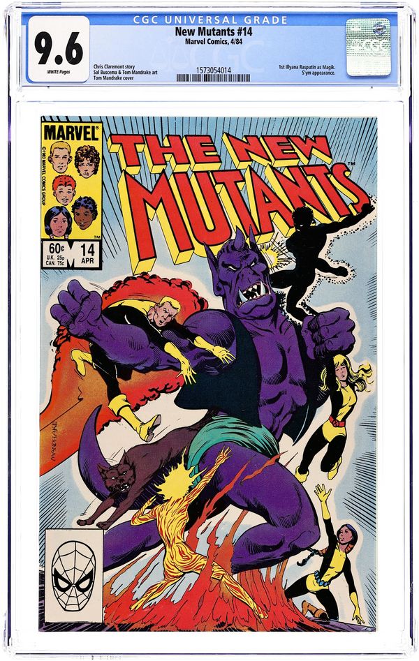 Direct Edition. Cover art by Tom Mandrake. 1st appearance of Magik (Illyana Rasputin). Do You Believe In -- Magik?, script by Chris Claremont, pencils by Sal Buscema, inks by Tom Mandrake; S'ym follows Illyana to earth and battles the New Mutants; they learn that Illyana is a mutant, with the power of teleportation, but she keeps her sorcery a secret; Doug gets a scholarship to the Massachusetts Academy, the school run by the Hellfire Club. 36 pgs. $0.60. Cover price $0.60.