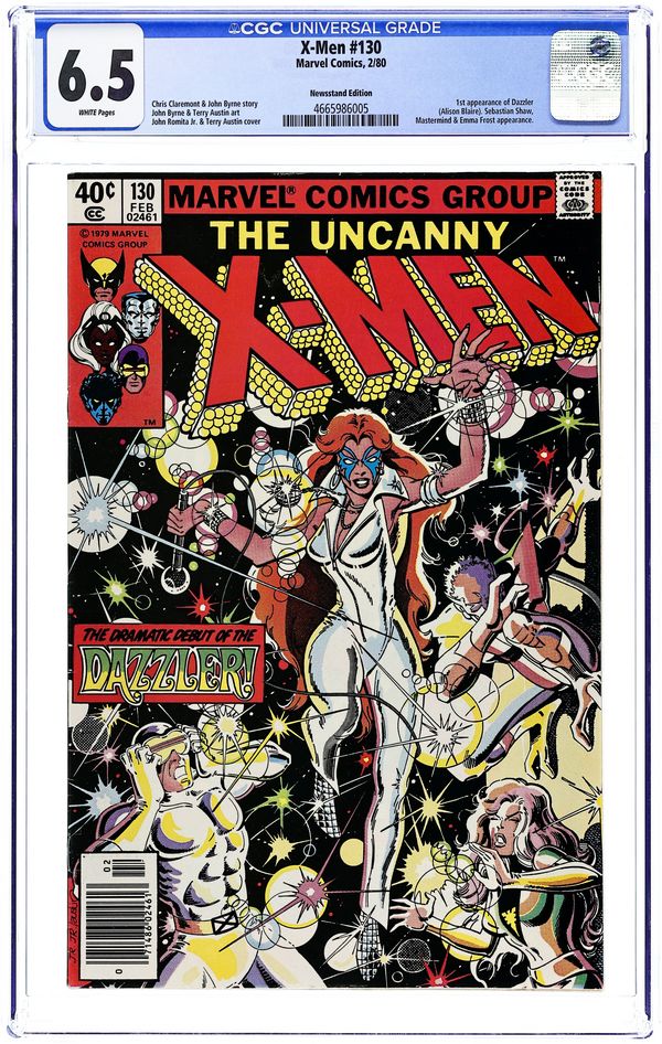 Newsstand Edition. The Dark Phoenix Saga: Part 1 of 9 - "God Spare the Children!" Story by Chris Claremont and John Byrne. Art by John Byrne and Terry Austin. This issue begins arguably the greatest and most tragic X-Men adventure of all time - The Dark Phoenix Saga. While the X-Men attempt to recruit a "New Mutant" by the name of Kitty Pryde, Wolverine, Colossus, and Storm are suddenly attacked by unknown assailants. What do these armored foes want, and who is the White Queen? 36 pages, full color. NOTE: 1st appearance of Kitty Pryde and Emma Frost, the White Queen. Cover price $0.40.