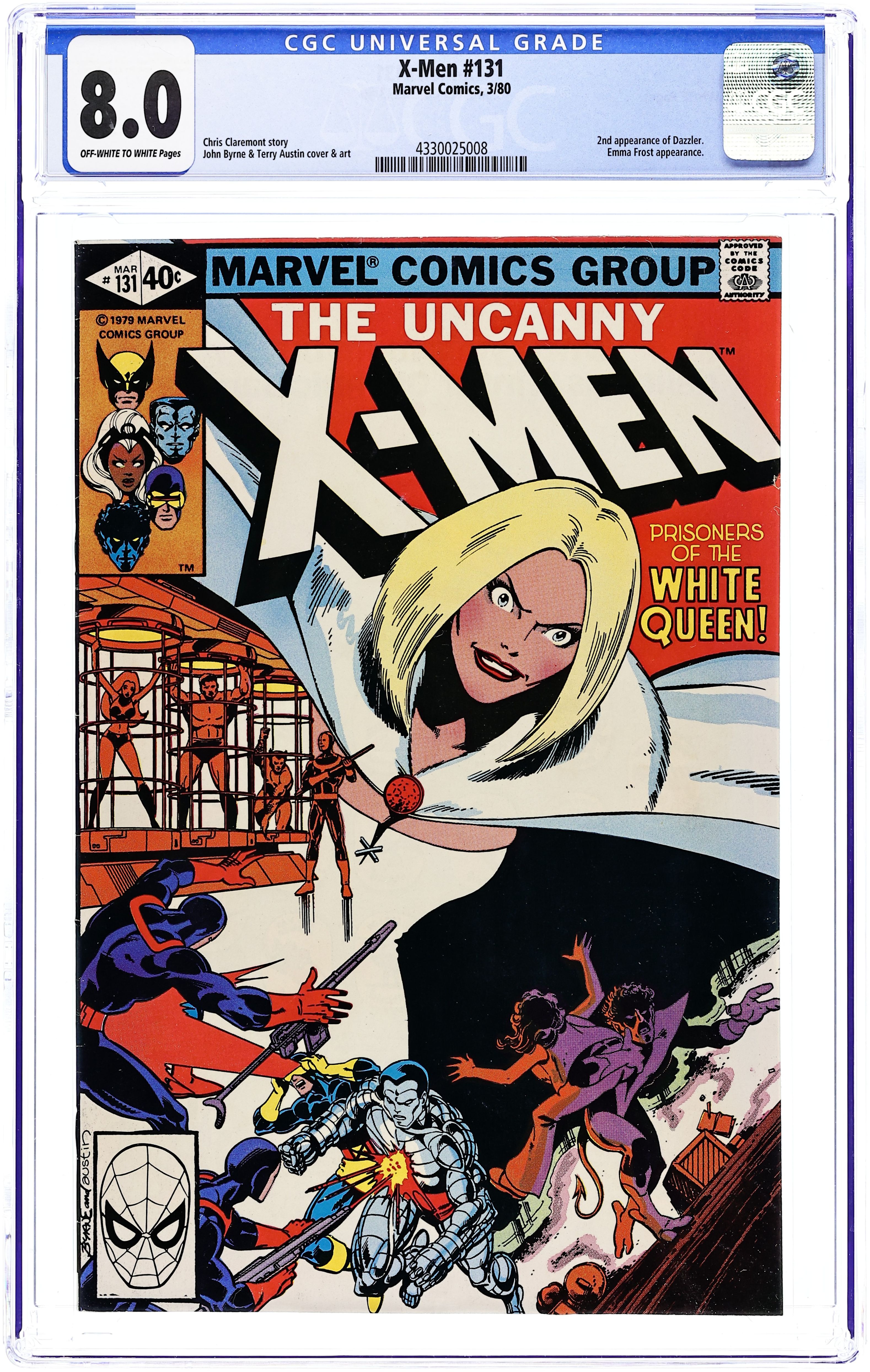 Ends Dec 22 9:51 PM CST Bid History 6 bids Current Bid $165 Your Secret Max Bid If you'd like to bid, please log in or register. Direct Edition. The Dark Phoenix Saga: Part 1 of 9 - "God Spare the Children!" Story by Chris Claremont and John Byrne. Art by John Byrne and Terry Austin. This issue begins arguably the greatest and most tragic X-Men adventure of all time - The Dark Phoenix Saga. While the X-Men attempt to recruit a "New Mutant" by the name of Kitty Pryde, Wolverine, Colossus, and Storm are suddenly attacked by unknown assailants. What do these armored foes want, and who is the White Queen? 36 pages, full color. NOTE: 1st appearance of Kitty Pryde and Emma Frost, the White Queen. Cover price $0.40.
