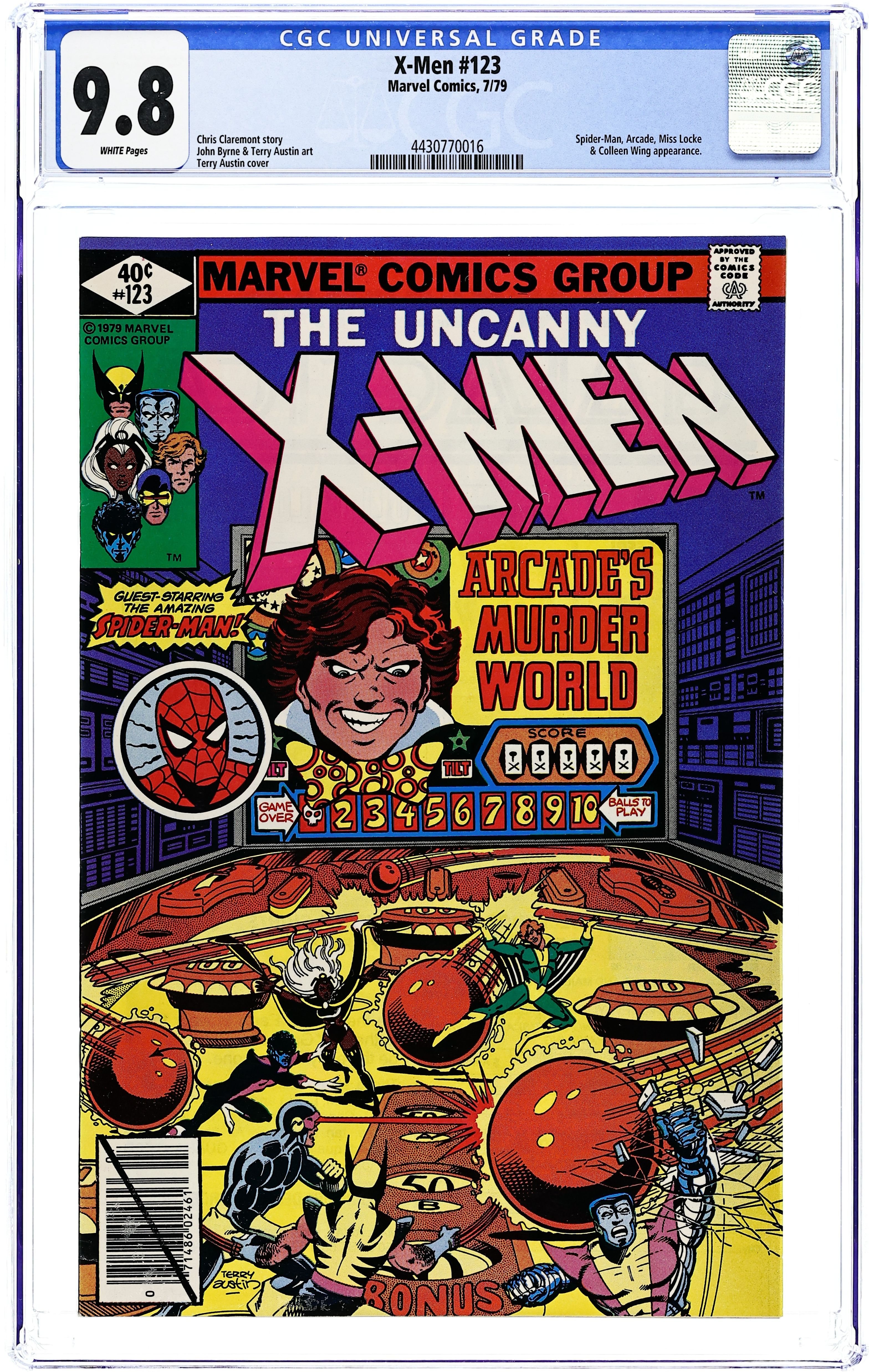 Direct Edition. "Listen - Stop Me if You've Heard It - But this One will Kill You!" Part 1 of 2. Guest-starring Spider-Man and Colleen Wing. Story by Chris Claremont and John Byrne. Art by John Byrne and Terry Austin. Cover by Terry Austin. One by one the X-Men are abducted. Now they must fight for their lives if they hope to survive the sinister creature of the diabolical Arcade - Murder World! NOTE: Uncanny X-Men #123 and #142 are rare commodities in the realm of comics as they are two of the very few covers where inker extraordinaire Terry Austin actually does the pencils as well. - Odinson Lone Star Comics Archivist. 36 pgs. Cover price $0.40.