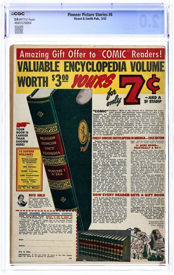 Pioneer Picture Stories (1941) comic books in grade FN or lower, graded by CGC