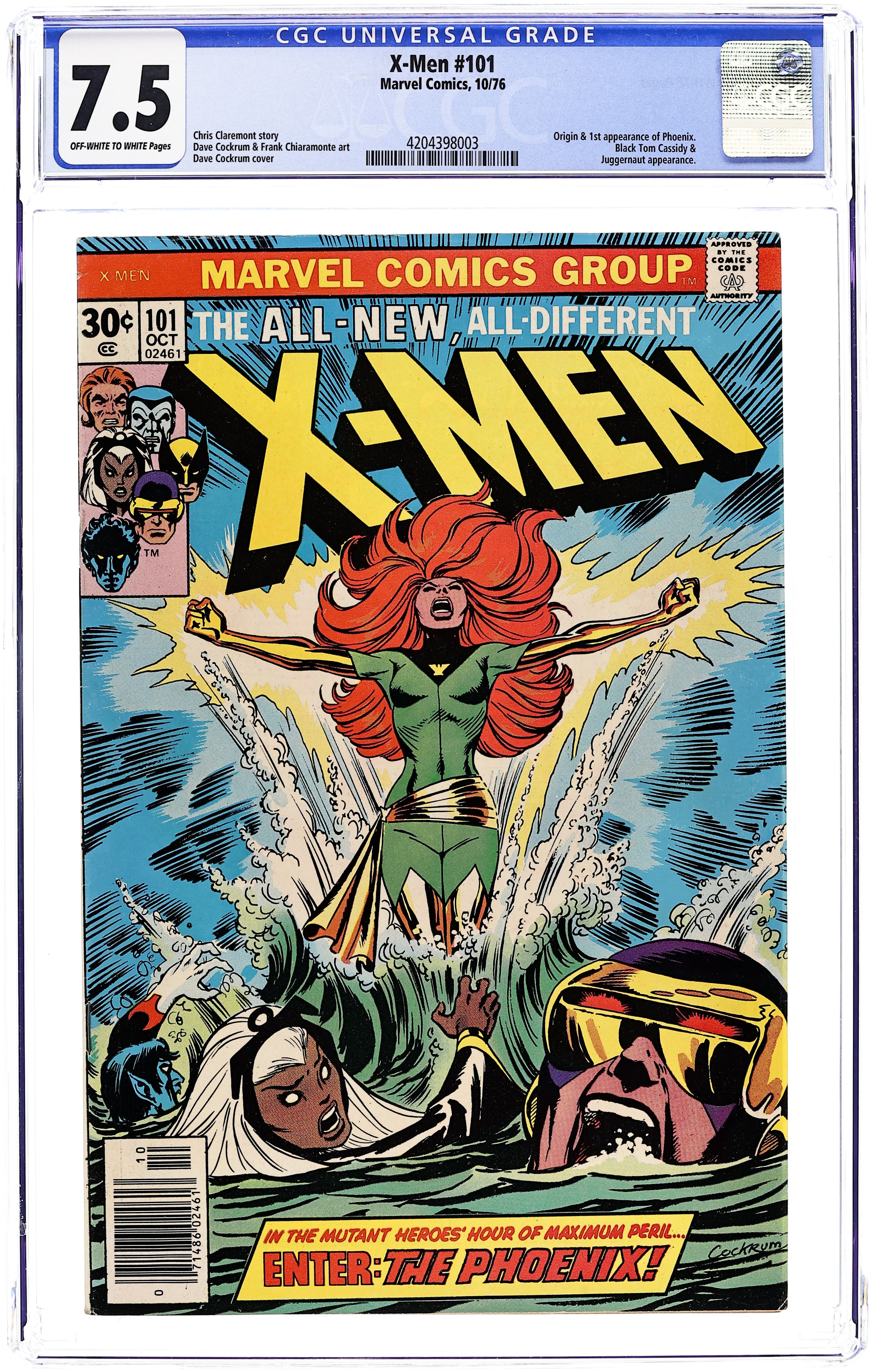 Starts Apr 20 "Like a Phoenix, from the Ashes!" Part 1 of 3. Story by Chris Claremont. Art by Dave Cockrum and Frank Chiaramonte. In the startling aftermath of last issue's events, the X-Men crash-land back on Earth, but they soon learn that a unbelievable change has come over Jean Grey. Don't miss the rise of the Phoenix! Meanwhile, the team decides to take in some much needed R&R. They head to Ireland to Banshee's ancestral home. However, nothing but danger and death wait for them here. 36 pages, full color. NOTE: 1st appearance of Phoenix, 1st appearance of Black Tom Cassidy, and Juggernaut cameo. Cover price $0.30.