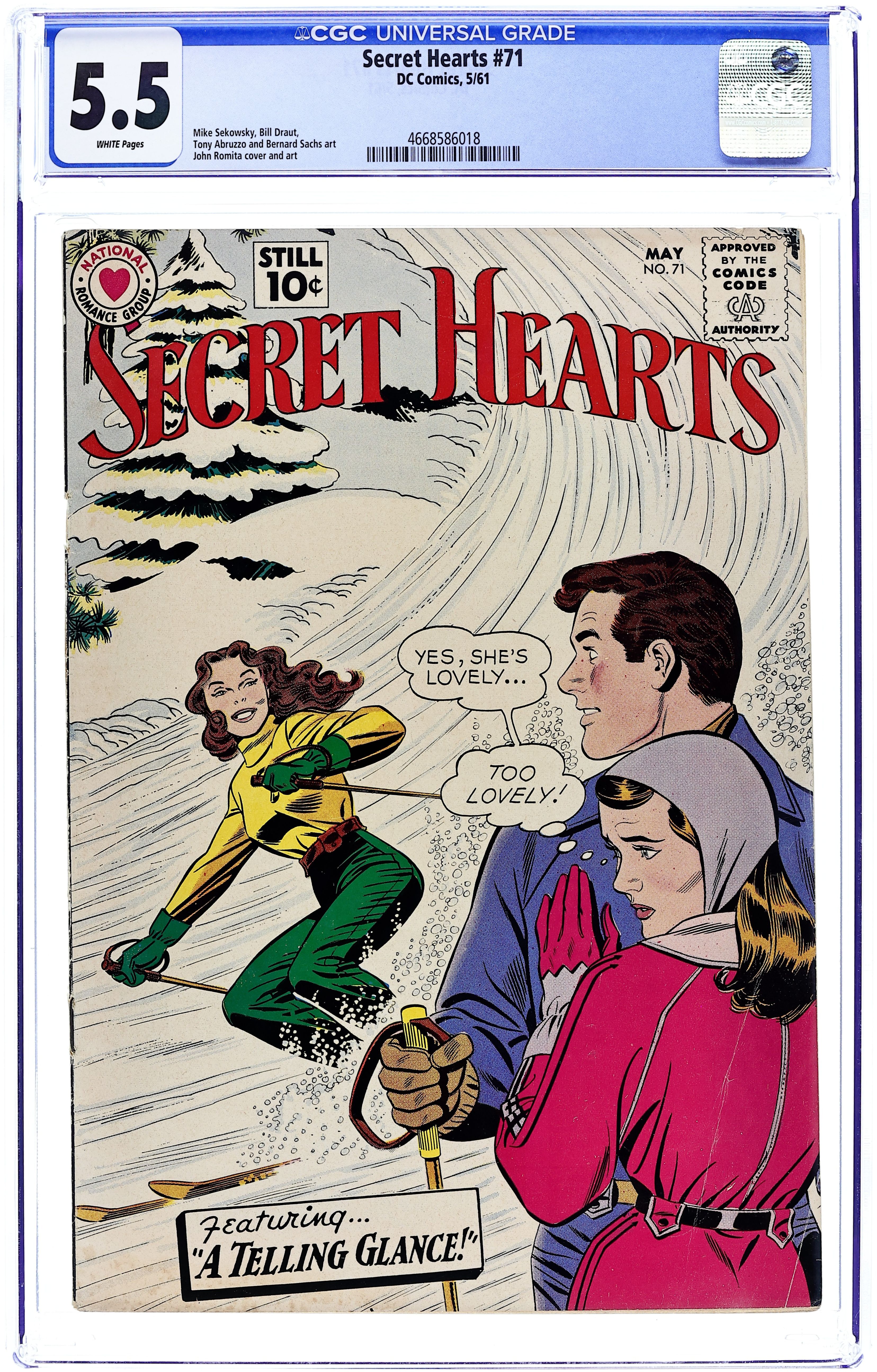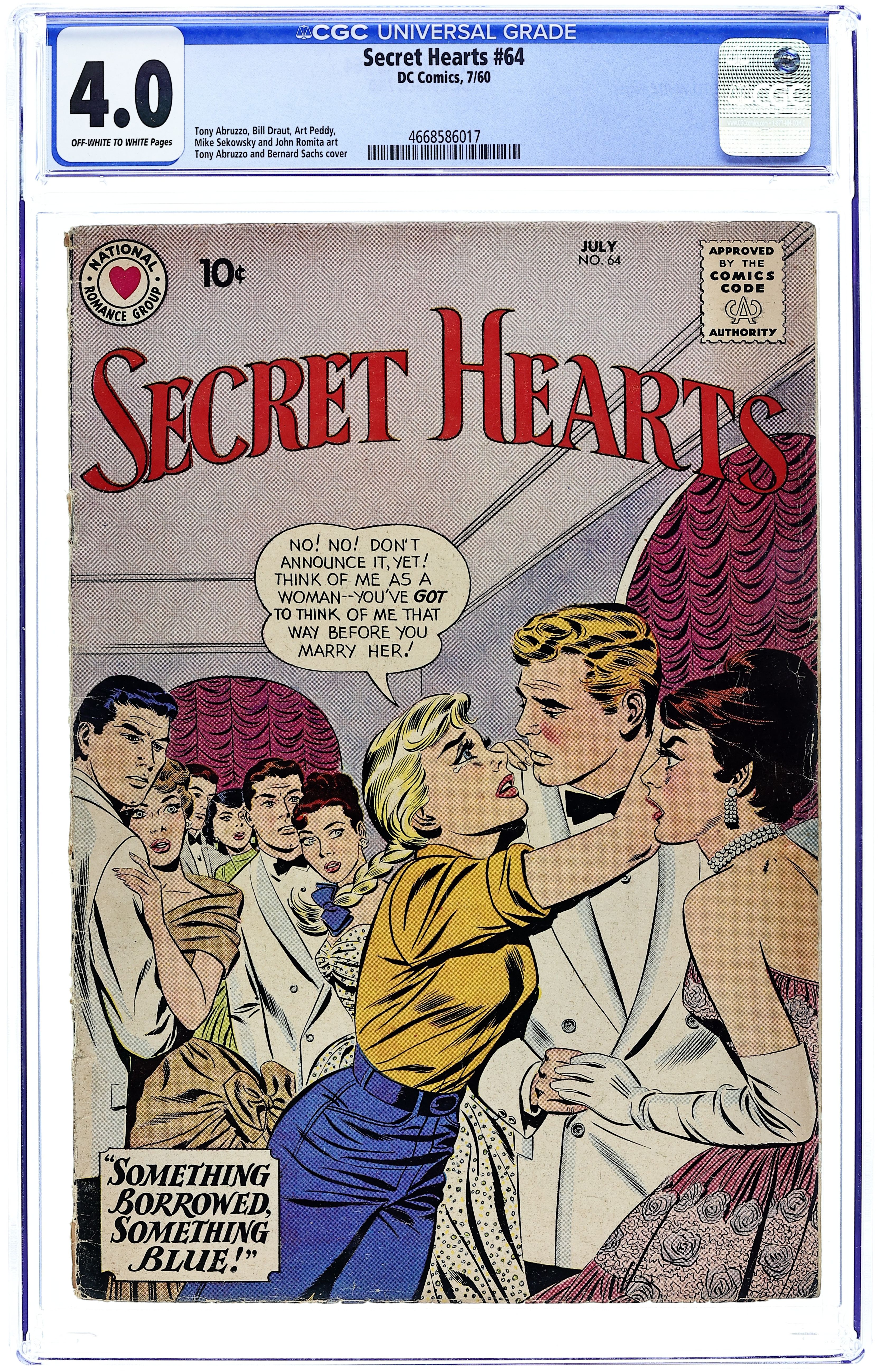 Cover by John Romita, Sr. Stories by unknown. Art by Mike Sekowsky, Tony Abruzzo, John Romita, Sr., Bill Draut, Bernard Sachs, Frank Giacoia? and unknown. Buck is tormented by Eve's tempestuous behavior until he finally meets another girl who seems much more suited to him in "Love Me, Love Me Not"! Plus: Rob has been in love with Maggi for years, but when his brother Brion takes an interest in her, Rob doesn't stand up for himself and almost loses her in "Hand-Me-Down Love"! Also featuring "A Telling Glance" and "So Many Souvenirs"! And: Letters page by Ann Martin, Counselor-at-Love. 32 pages, full color. Cover price $0.10.