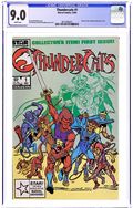 First Printing. Direct Edition. "Survival Run!" Written by David Micheline. Art by Jim Mooney and Brett Breeding. When the Thundercats' homeworld is destroyed, a small group of survivors crash-land on the mysterious green world known as Third Earth. They soon find themselves in a desperate fight for survival against their mortal enemies the Mutants. However, things go from bad to worse when their battle with the vile Mutants awakens Mumm-Ra, an ancient ogre-mage whose dark magic powers know no rival. 36 pages, FC Cover price $0.65.