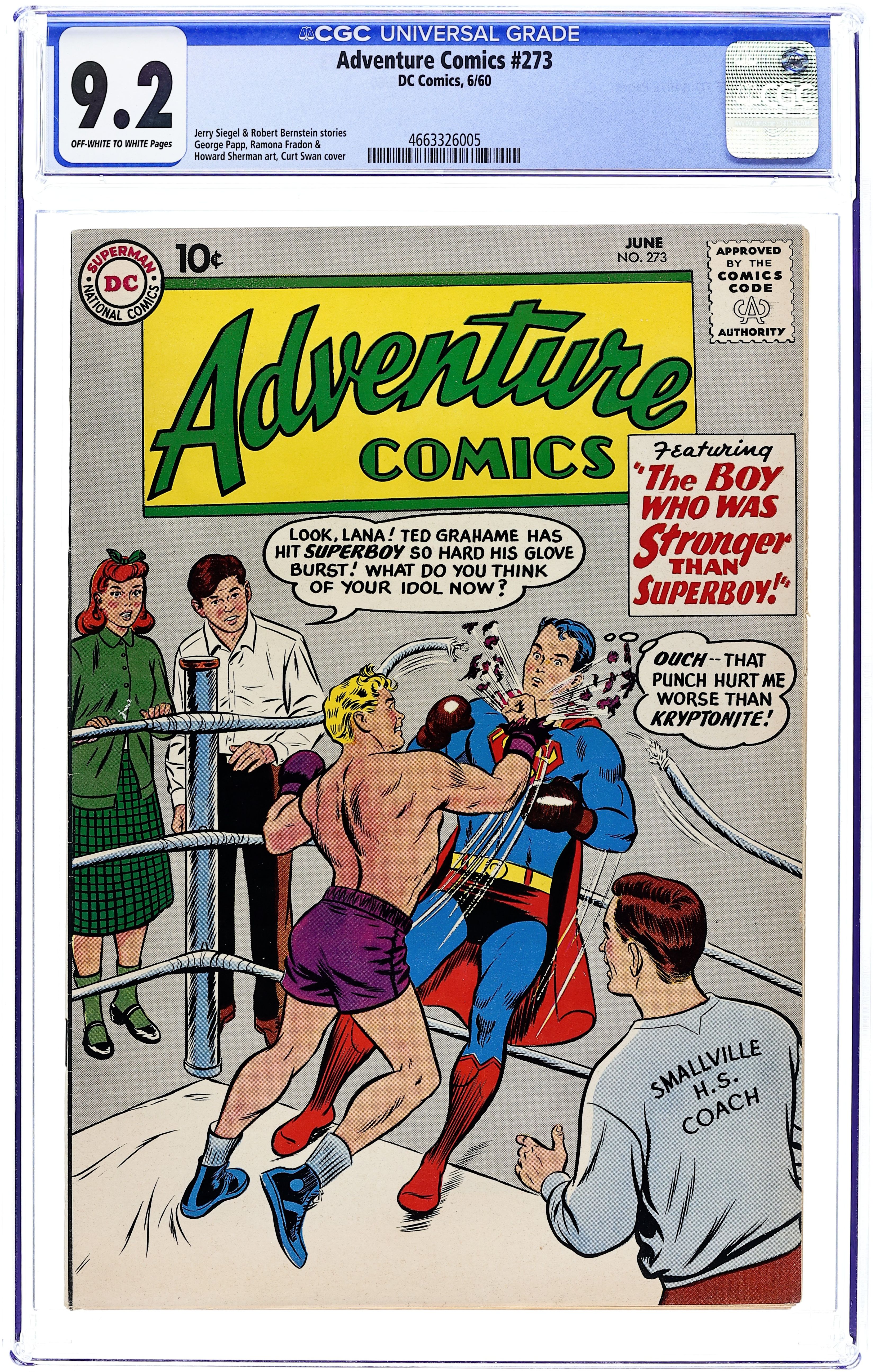 Cover by Neal Adams. "Superman... Guilty of Homicide!", script by Leo Dorfman, pencils by Curt Swan, inks by George Klein; Ron Noble, the secret head of the International Crime Exchange, plots to frame Superman for accidental homicide in a boxing exhibition, but his colleague Dr. Frost arranges it so that Noble is truly killed so that Frost can take over. "Superboy in Argo City," script by Cary Bates, art by Jim Mooney; Superboy is accidentally swept up by a space-probe belonging to his uncle Zor-El; He is taken to Argo City where he meets young Kara, his cousin. Batman ad. Superman ad. 36 Pages, Full Color. $0.12 Cover price $0.12.