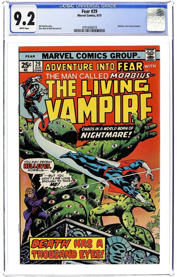 Mark Jewelers Advertisement Insert Variant. Final issue of the series. Morbius stars in "The End of a Vampire!" Script by Bill Mantlo, pencils by Frank Robbins, inks by Vince Colletta. Cameos by Spider-Man and the Lizard. The letters page contains Marvel Value Stamp series A # 75 (Morbius). Gil Kane/Dan Adkins cover. Cover price $0.25.