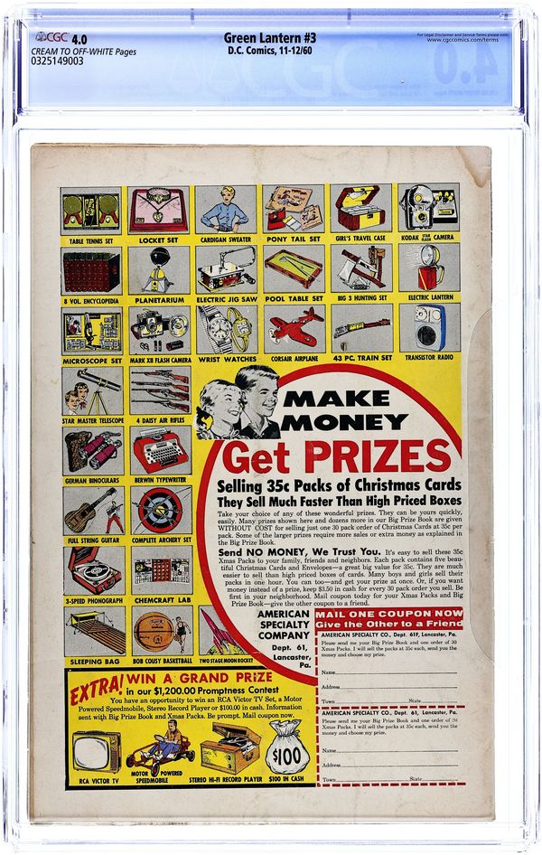 Tags: Green Lantern$365.00- Paper: Cream to off white