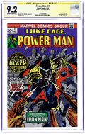 "Rich Man: Iron Man, Power Man: Thief!" Guest-starring Iron Man. Story by Len Wein. Art by George Tuska and Billy Graham. A man in a suit and tie comes as a representative for Tony Stark to hire Luke Cage to test the security at Stark International. This puts Power Man in direct conflict with Stark's bodyguard, the Invincible Iron Man. Plus, what happens when Shell-Head reveals that nobody at Stark International hired Cage? Can these two iron-fisted heroes stop beating on each other long enough to catch the culprit behind it all? NOTE: 1st issue to be titled Power-Man. Cover price $0.20.