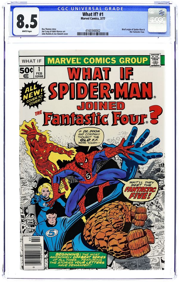 Cover by Ron Wilson and Joe Sinnott. What if Spider-Man Joined the Fantastic Four? Script by Roy Thomas, pencils by Jim Craig, inks by Pablo Marcos; Spider-Man becomes a member of the FF; Cameos by Killraven, the Squadron Supreme, and Deathlok. Hostess Fruit Pie ad with the Hulk, pencils by Dave Cockrum. Ad for Richochet Racers with Spider-Man and Captain America. Roy Thomas discusses how the title came about. 52 pgs. Cover price $0.50.