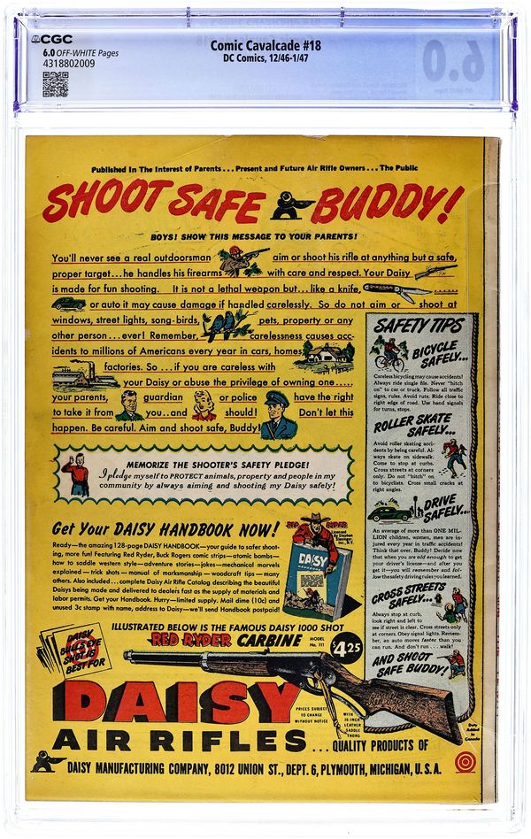 Comic Cavalcade: One-Hundred Years of Cooperation (1945) is an 8-page, full color, newsprint promotional comic (reprinted from Comic Cavalcade #9). No cover price.