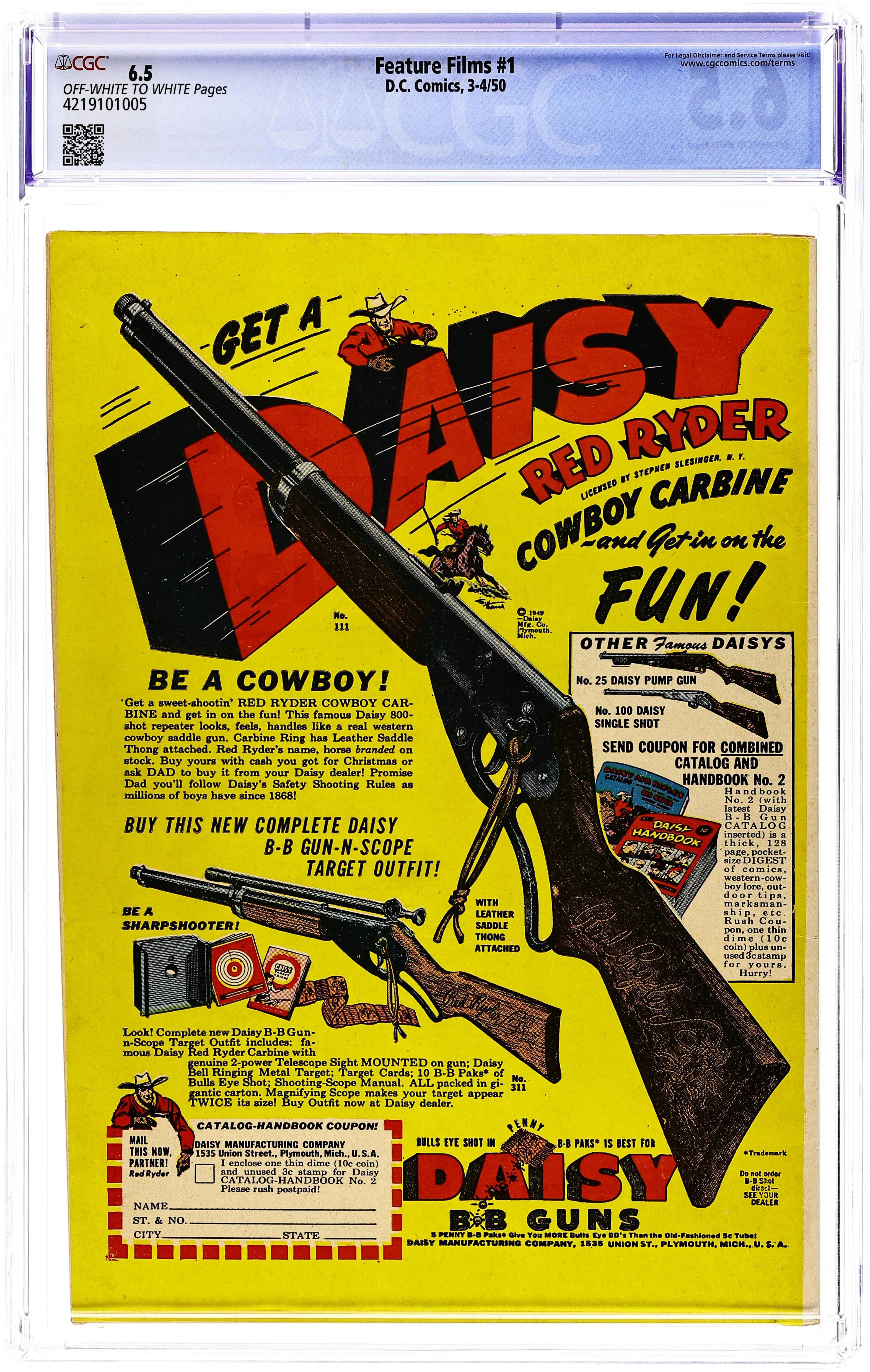 Cover by Frank Frazetta. Stories and art by Rick Yager, Matt Christopher and Coulton Waugh. The long-running series that introduced "comic books" to the world, featuring reprints of comic strips. Dan and Dickie Dare visit Hawaii, where Dickie foolishly jumps into a volcano. One last action-packed Frank Frazetta Buck Rogers cover (and an offer to join "Buck Rogers Rocket Rangers"). A series of short "True Heroic Stories," featuring real-life tales of heroism. Buck Rogers; Dickie Dare; The Best Automobile Sticker; Vacation Can Wait; Flight 5... Down. 36 pages, full color. Cover price $0.10.