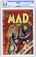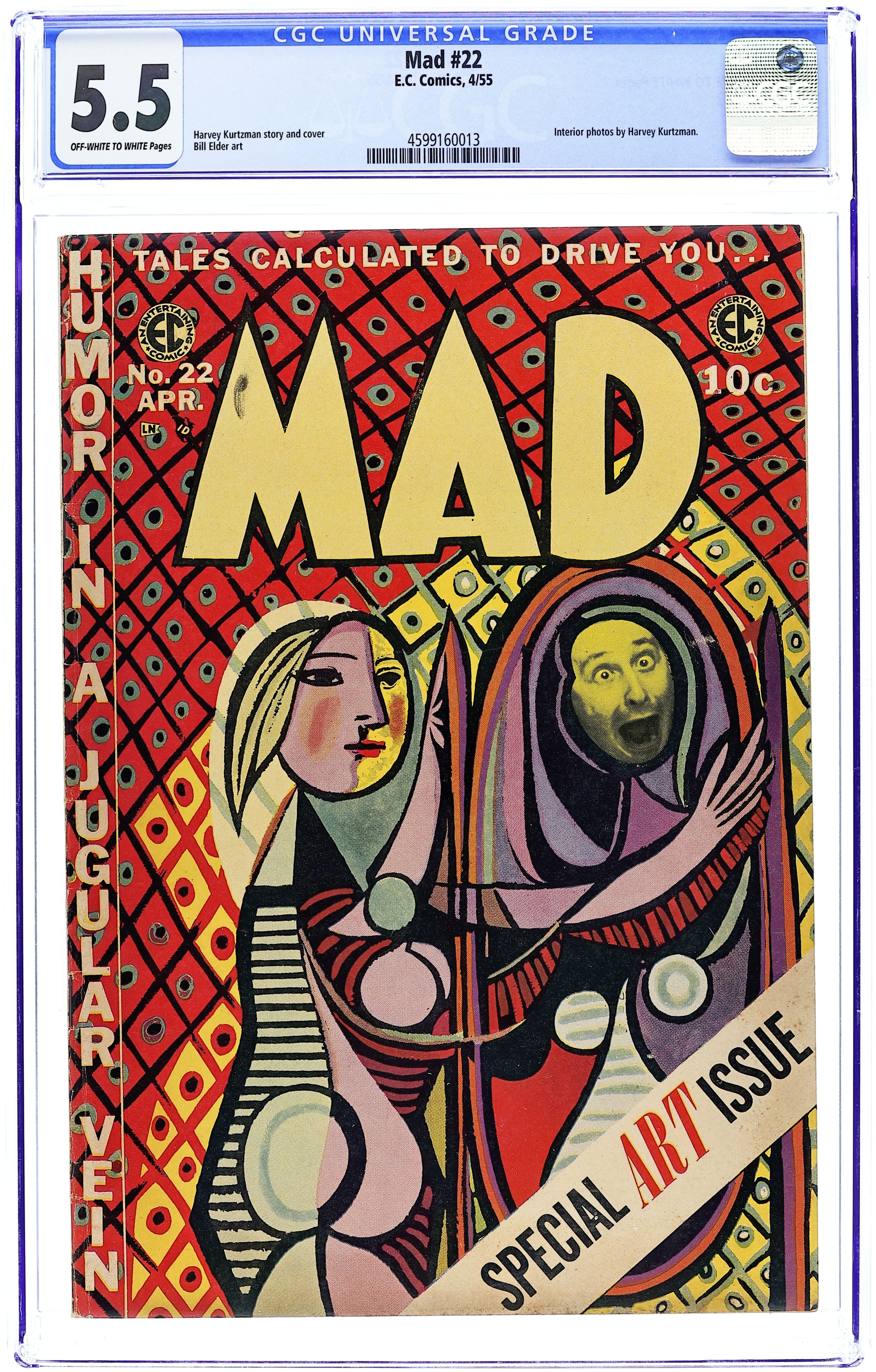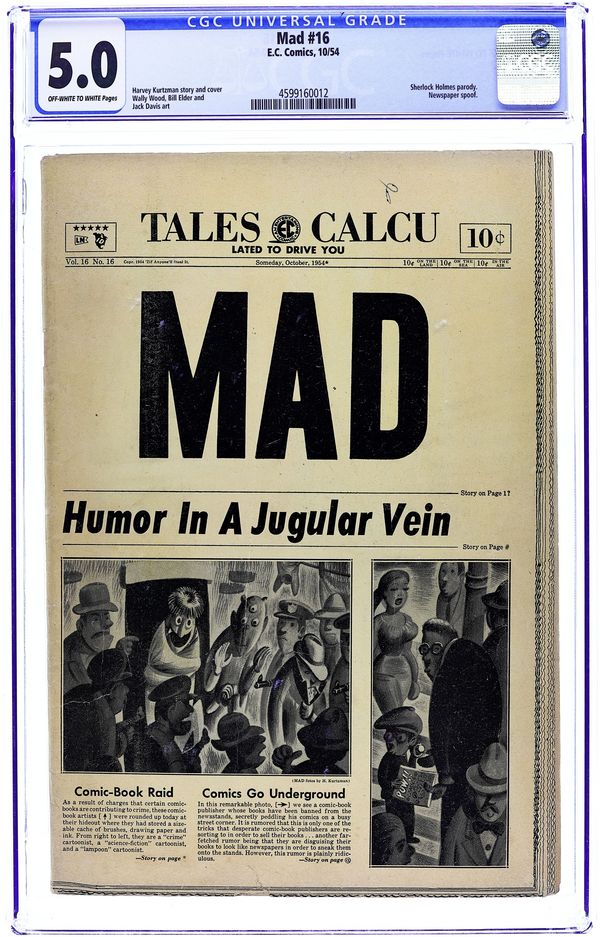 Cover art by Wally Wood and Harvey Kurtzman (frame). "The Dave Garrowunway Show," art by Jack Davis; Dave gets locked out of the studio and J. Floyd continues the show; Parody of the "Today" tv show with Dave Garroway. "Confidentially," art by Bill Elder; Phony articles from various confidential exposé magazines showing how they are all the same. "The Conquest of Tillie's Lookout," script by Ira Wallach, art by Wally Wood; An account of climbing a minor hummock at a New England resort, narrated as if climbing Mt. Everest. "Let's Go For A Ride!", art by Jack Davis; Exaggerated versions of the problems of a Sunday drive, with the family finally deciding home was more peaceful. "The Prodigious," art by Wally Wood; Parody of movie "The Prodigal." "The Seven Itchy Years," art by Bill Elder; Scenes from the movie with a review. "Today's Criminal Investigating Game," script and art by Roger Price; Roger discusses "The Sissonville Fiend Case", how to surround and capture a criminal whose location is known, obtaining information, identifying criminal types, stake outs, fingerprints, marksmanship, and delinquent youth assistance programs. "A Guide To Better Understanding The Fine Old Art of Boxing," script by Al Jaffee, art by Jack Davis. "Tense Tycoons and Lucky Bucks," script by Bernard Shir-Cliff, art by Bernie Krigstein and Wally Wood; Parts of a story about a corporate raider and the people of one of the companies he buys. 60 pgs., B&W. Cover price $0.25.