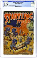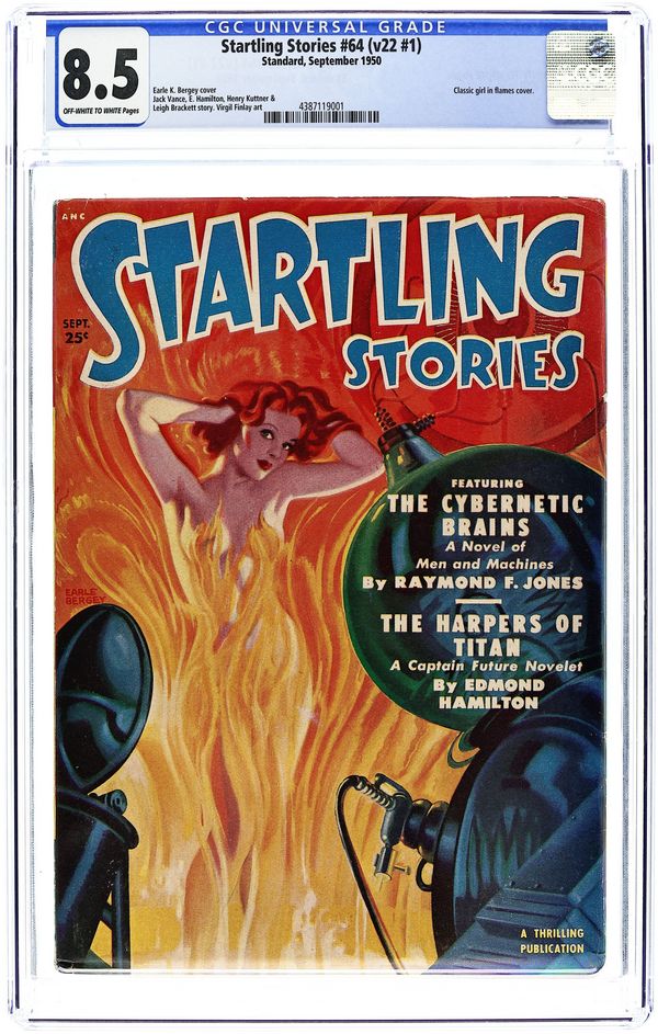 Volume 22, Issue 1 - September, 1950. Cover by Earle K. Bergey. Stories by Raymond F. Jones, Edmond Hamilton (Captain Future story "The Harpers of Titan"), Arthur K. Barnes and Henry Kuttner, Jack Vance, Mack Reynolds, and Matt Lee. Virgil Finlay illustration. 6.75-in. x 9.75-in.; black and white; 166 pages. Cover price $0.25.