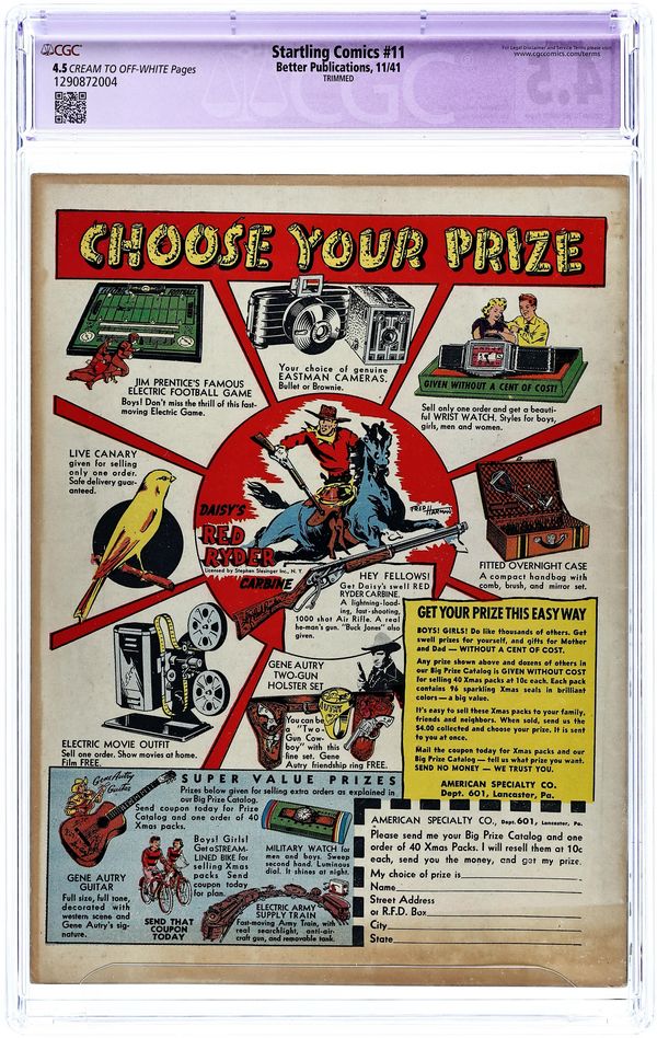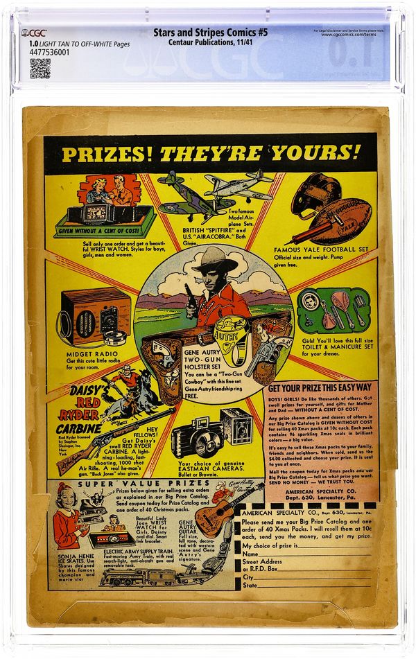 Published Nov 1941 by Centaur Comics.$1,300.00