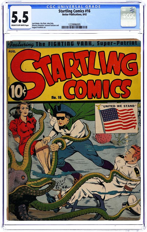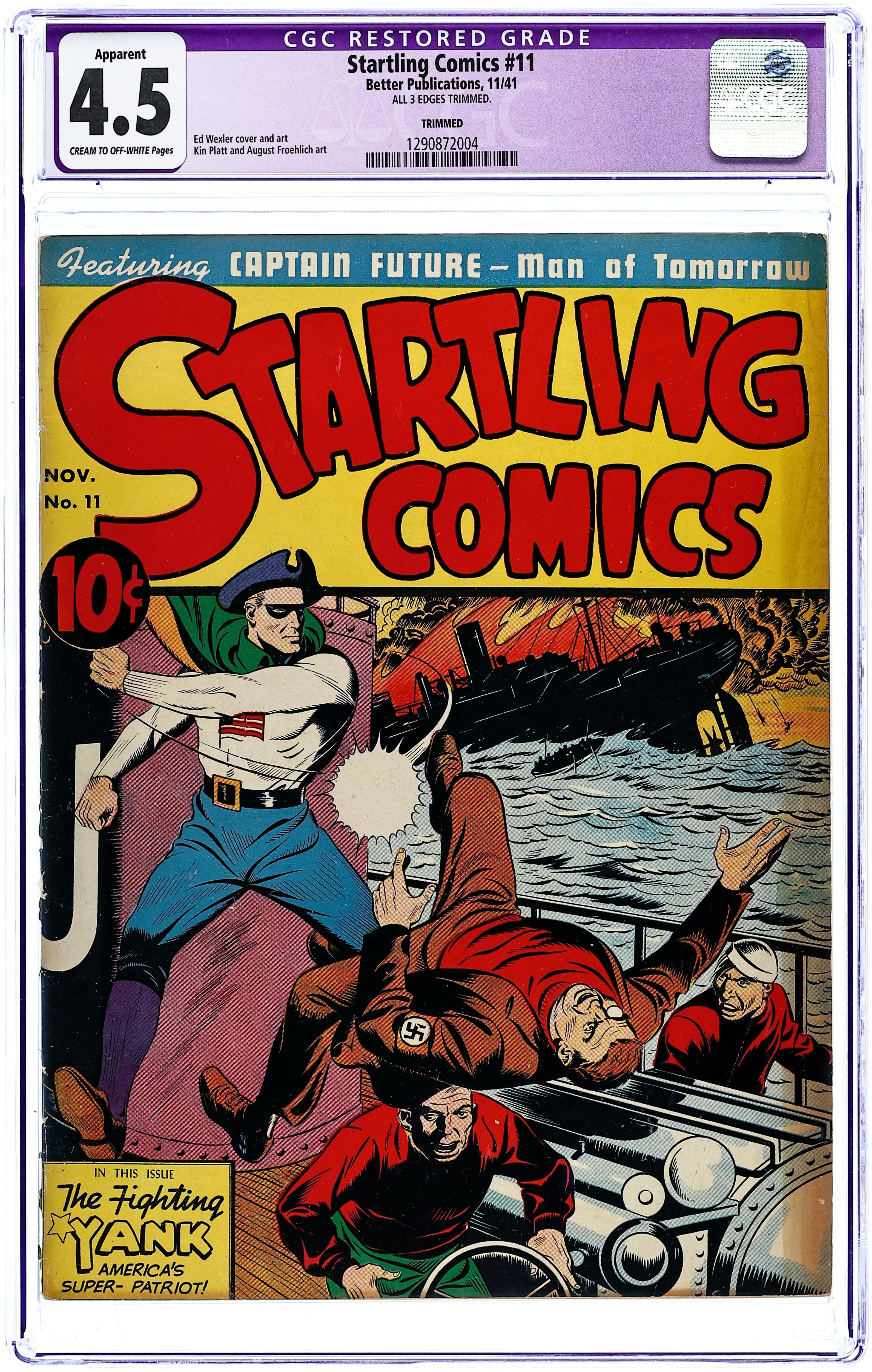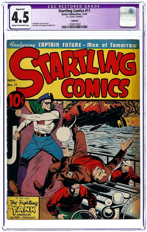 Fighting Yank story. Pyroman story. Captain Future story, art by Kin Platt. Four Comrades story, art by Maurice Gutwirth. Don Davis story, art by Leonard Sansone. Bobo the Hobo story. Tubby story. 68 pgs. $0.10. Cover price $0.10.