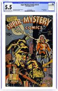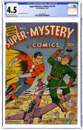 Cover art by Joe Shuster. Superman versus Luthor, script by Jerry Siegel, art by Paul Cassidy [as Joe Shuster]; When Clark Kent begins to investigate a new weapon being tested by the Army that artificially causes earthquakes, little does he know that Lex Luthor is hot on the trail of securing the plans for that invention, one way or the other. Attaining Super-Strength tips. This Doggone World by Fred Schwab. From The 4 Corners fact page by Sheldon Moldoff. Untitled Superman story, script by Jerry Siegel, pencils by Joe Shuster, inks by Paul Cassidy [as Joe Shuster]; Superman faces off once again with the evil Luthor, who first has tapped oil from oil wells all over the world for his purposes, then inundating the western coast of the U.S. when he raises a glass-enclosed city of ancient weird design from the murky depths. Superman of America contest info. Changer of Destiny text story, script by Hugh Langley, art by Fred Guardineer. Untitled Superman story, script by Jerry Siegel, pencils by Joe Shuster, inks by Paul Cassidy [as Joe Shuster]; The suicide of the author of a manuscript, which states that sinister forces seek to retard this nation's return to prosperity, prods Superman to dart from place to place, averting the disasters that have been planned by these forces to disrupt vital aspects of national industries. Untitled Superman story, script by Jerry Siegel, pencils by Joe Shuster, inks by Paul Cassidy [as Joe Shuster]; Superman pretends to join a group of racketeers who want to control the city's truck drivers' union so that they can paralyze food distribution and demand blackmail. 68 Pages, Full Color. Cover price $0.10.