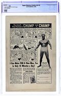 Cover pencils by Joe Shuster, inks by Paul Cassidy. Features the 1st splash page in a superman comic. Untitled Superman story, script by Jerry Siegel, art by Paul Cassidy [as Joe Shuster]; When Lois is found at the scene of the murder of a noted jewel collector, she is arrested for that murder. Supermen of America club info. Too Big For Marbles text story, script by George Shute, art by Don Komisarow. Untitled Superman story, script by Jerry Siegel, art by Paul Cassidy [as Joe Shuster]; Brute Bashby and his thugs roll into the town of Gateson with the sole purpose of establishing a protection racket, which means each shop owner must fork over 10% of their profits. Super Strength activity page, script by Jerry Siegel, art by Jack Burnley. Untitled Superman story, script by Jerry Siegel, pencils by Paul Cassidy [as Joe Shuster], inks by Cassidy and Paul Lauretta [both as Joe Shuster]; Relief efforts to help the tornado and earthquake ravaged South American nation of San Caluma head out by boat hit a snag when an aircraft carrying the relief commission officials nearly crashes. The Strangest Case text story, script by Gardner F. Fox, art by Don Komisarow. Sports Close-Ups! fact page by Jack Burnley. Untitled Superman story, script by Jerry Siegel, pencils by Paul Cassidy [as Joe Shuster], inks by Cassidy and Paul Lauretta [both as Joe Shuster]; When a department store collapses and the head of the construction firm that erected it is slain, Clark Kent smells a story in the making. 68 Pages, Full Color. Cover price $0.10.
