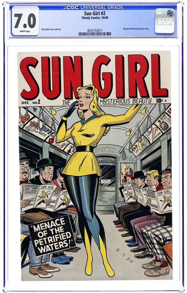 Cover art by Syd Shores. Murder Motor Mart starring Sub-Mariner and Namora, script and art by Bill Everett. Framed For Crime starring the Blonde Phantom, pencils by Mike Sekowsky. Terror In the Lost Colony starring the Sub-Mariner and Namora, pencils by Bob Powell, inks by Ken Bald. 36 pgs. $0.10. Cover price $0.10.