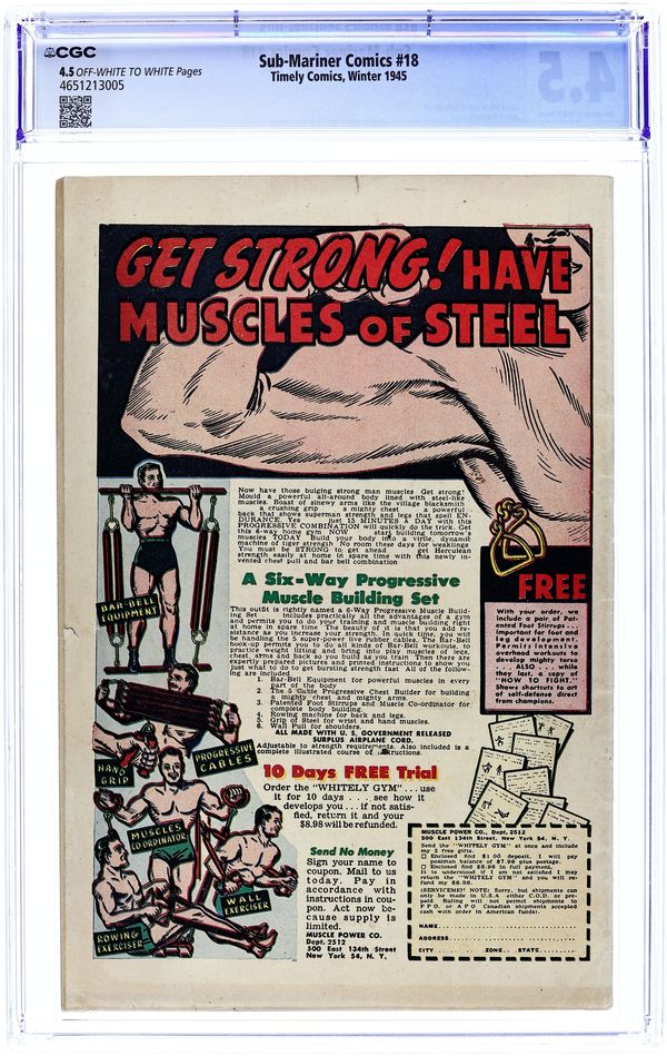 Tags: Sub-MarinerPublished Dec 1943 by Timely/Marvel.$2,050.00- Paper: Cream to off white