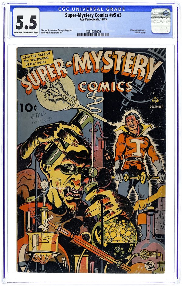 Last appearance of Magno the Magnetic Man. In order of appearance: "The Adventures of Bert and Sue, 'Adventure of the Gangster Who Was Killed Twice'"; "Mr. Risk, 'Murder at the Planetarium'" art by Warren Kremer as 'DOC'; "Harry the Hack"; "UNO, 'The Baron's Last Banquet'"; "Copper Clancy"; and "Magno and Davey". "Mystery of the Hidden Hoard" text story by Brant House. 52 pages. Full color. Cover price $0.10.