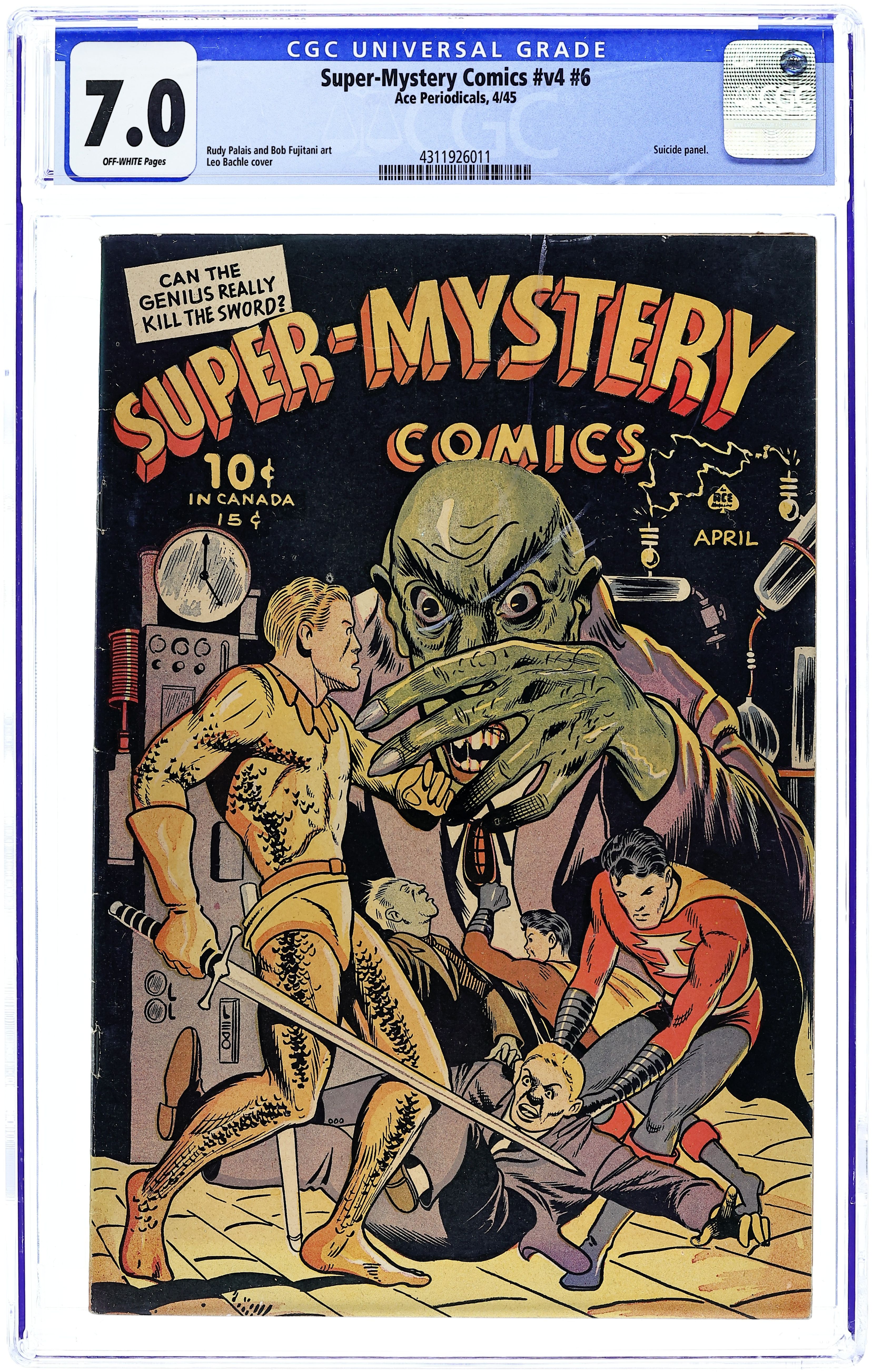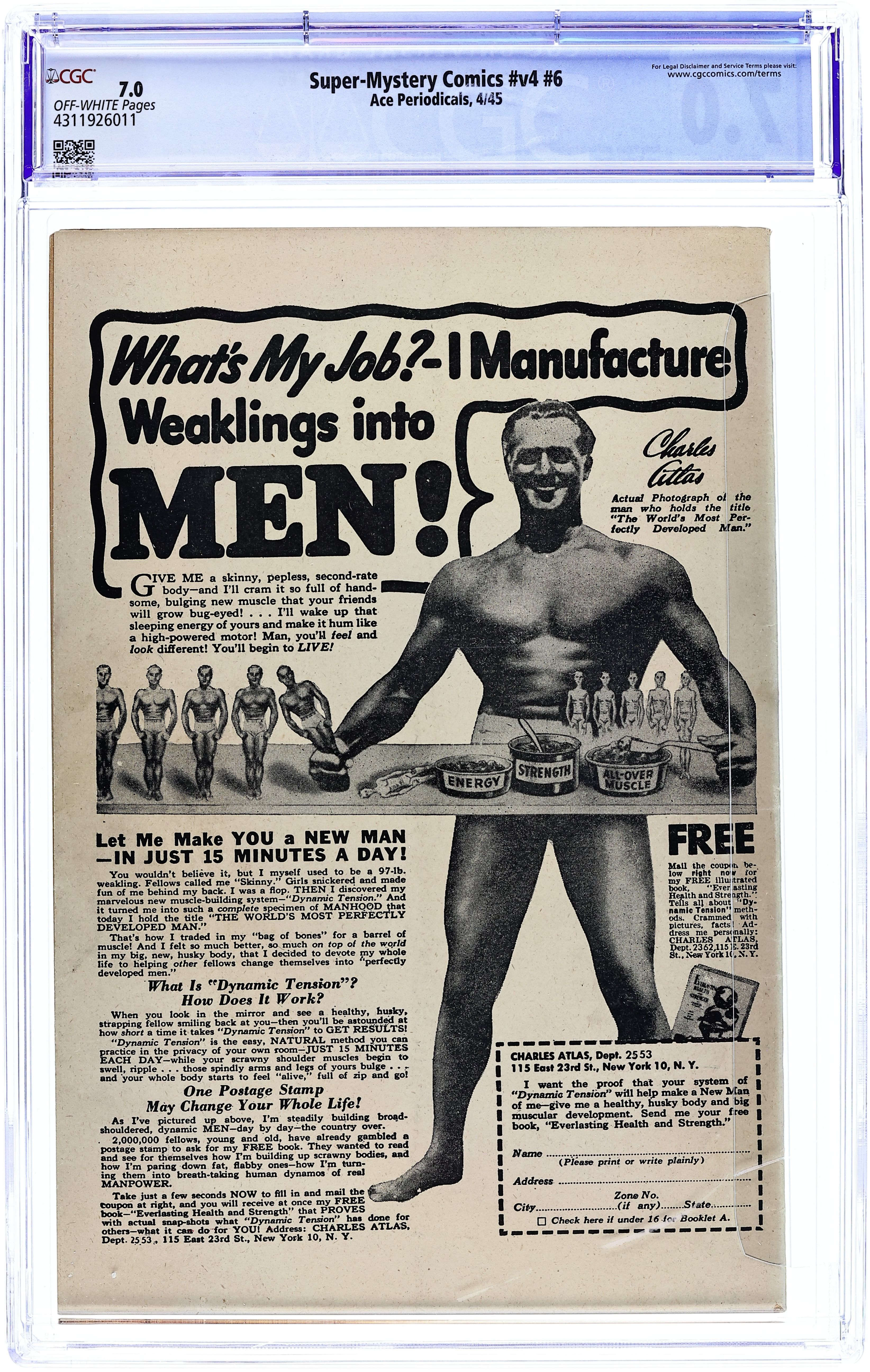 Starts Jan 3 Bondage cover by Warren Kremer (as 'DOC'). In order of appearance: "Magno and Davey" art by Rudy Palais; "Chuck"; "Mr. Risk" art by Warren Kremer as 'DOC'; and "Harry the Hack". "Pay Dirt Paradise" text story by Ralph Powers, reprinted from Four Favorites (1941) #22 and from Super Mystery Comics Vol. 5 (1945) #4, and reprinted in Super Mystery Comics Vol. 6 (1946) #6. 36 pages. Full color. Cover price $0.10.