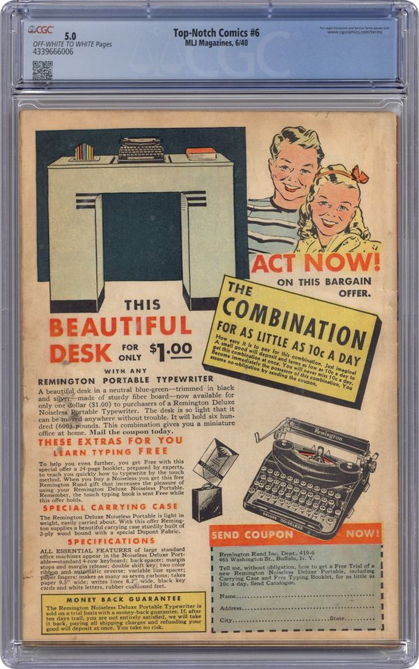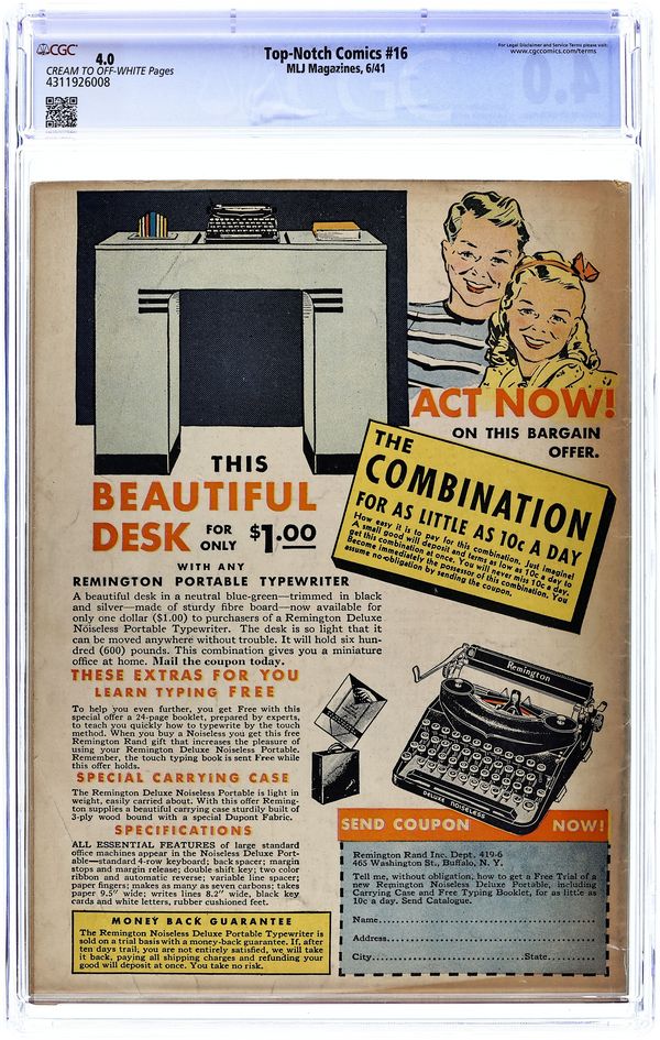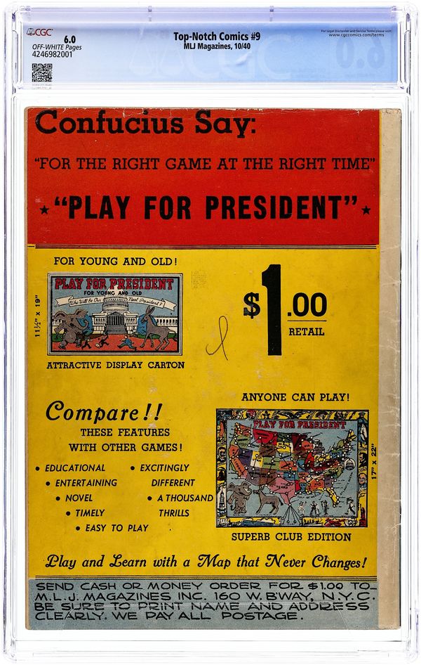 Published Oct 1940 by MLJ Magazines.$1,995.00