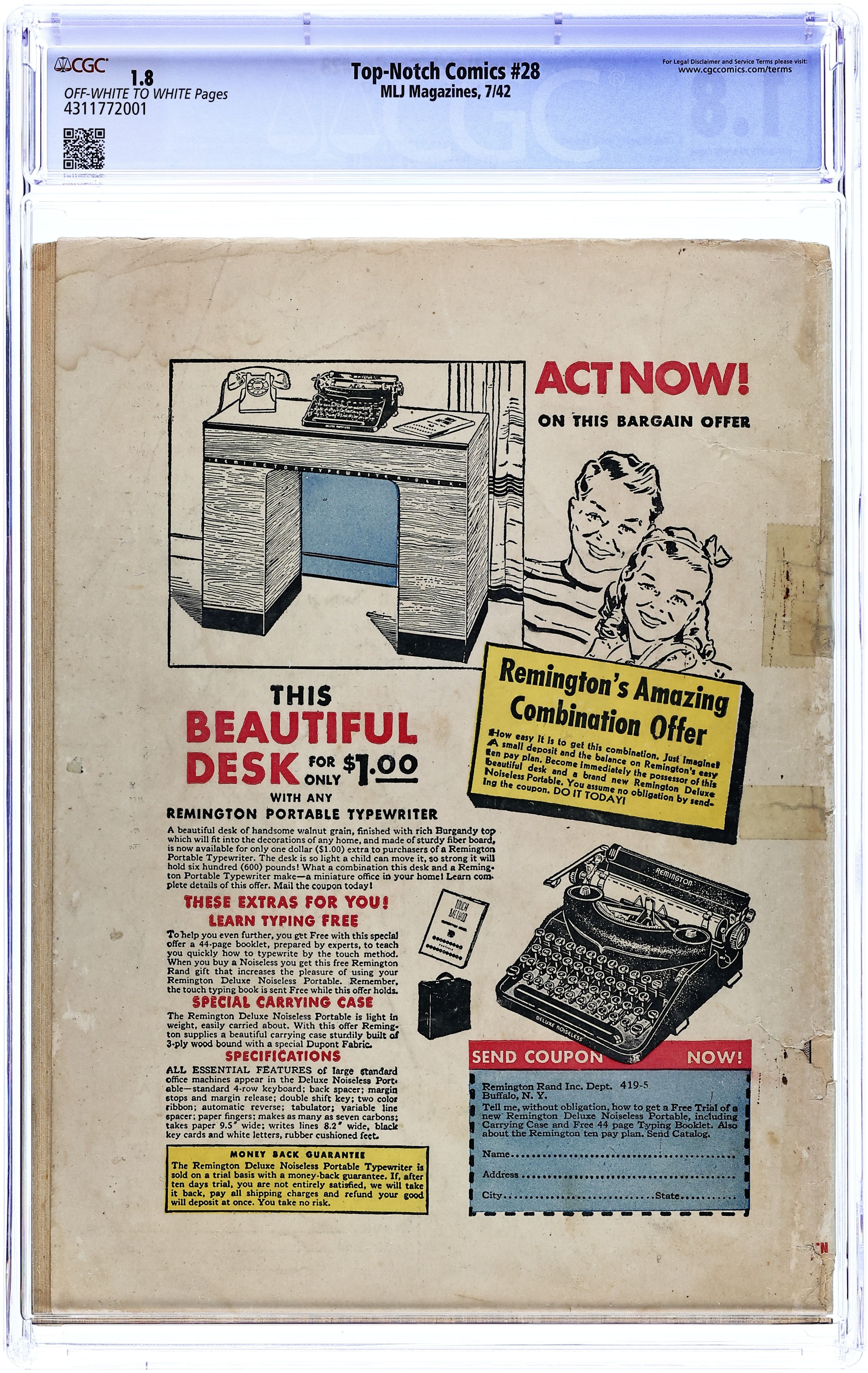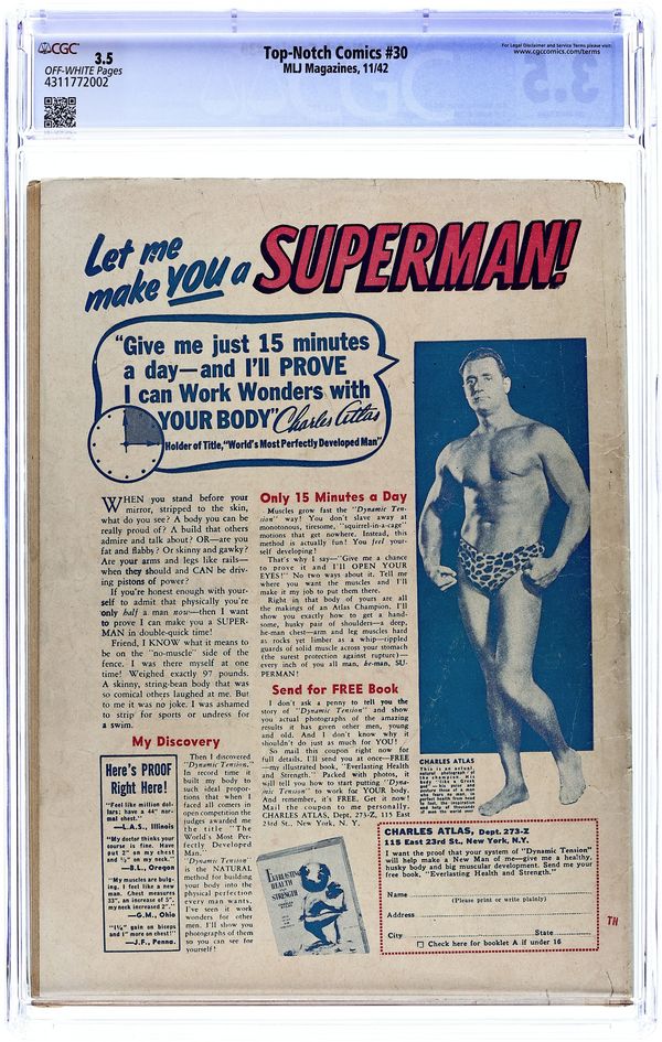 Published Jan 1941 by MLJ Magazines.Top-Notch Comics (1939) 11 CGC 7.0
