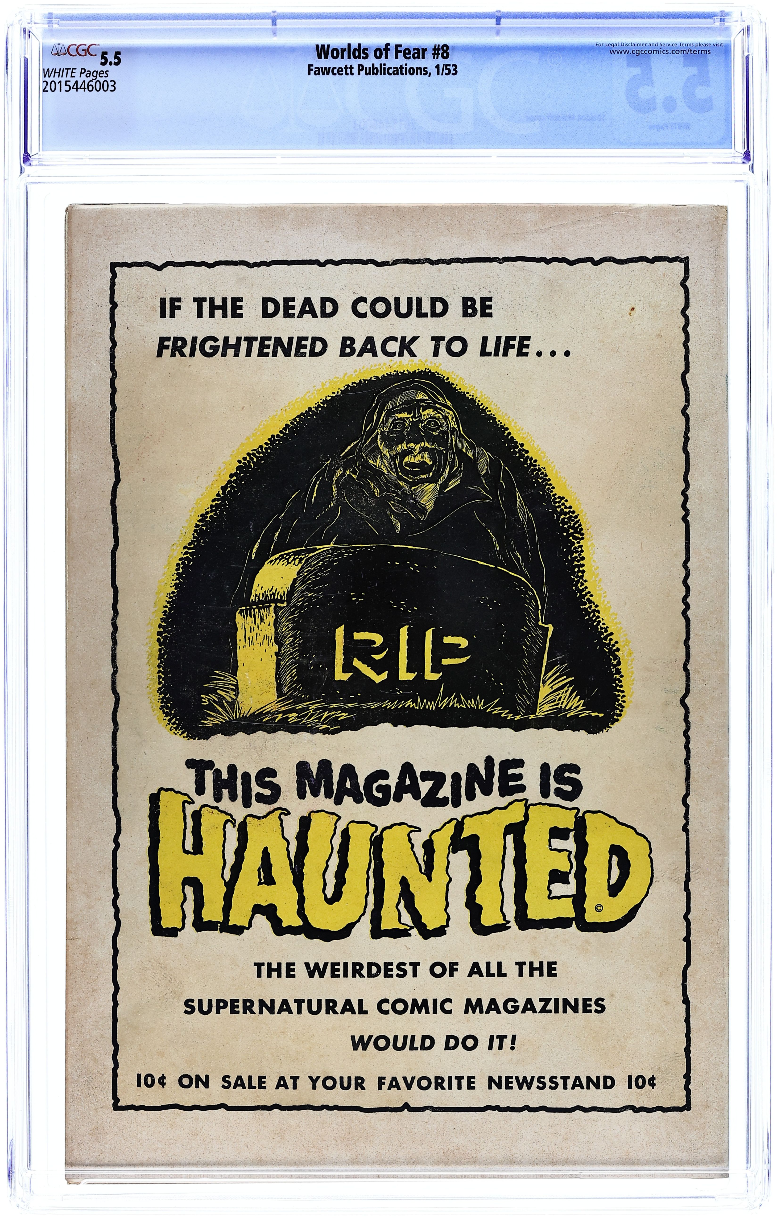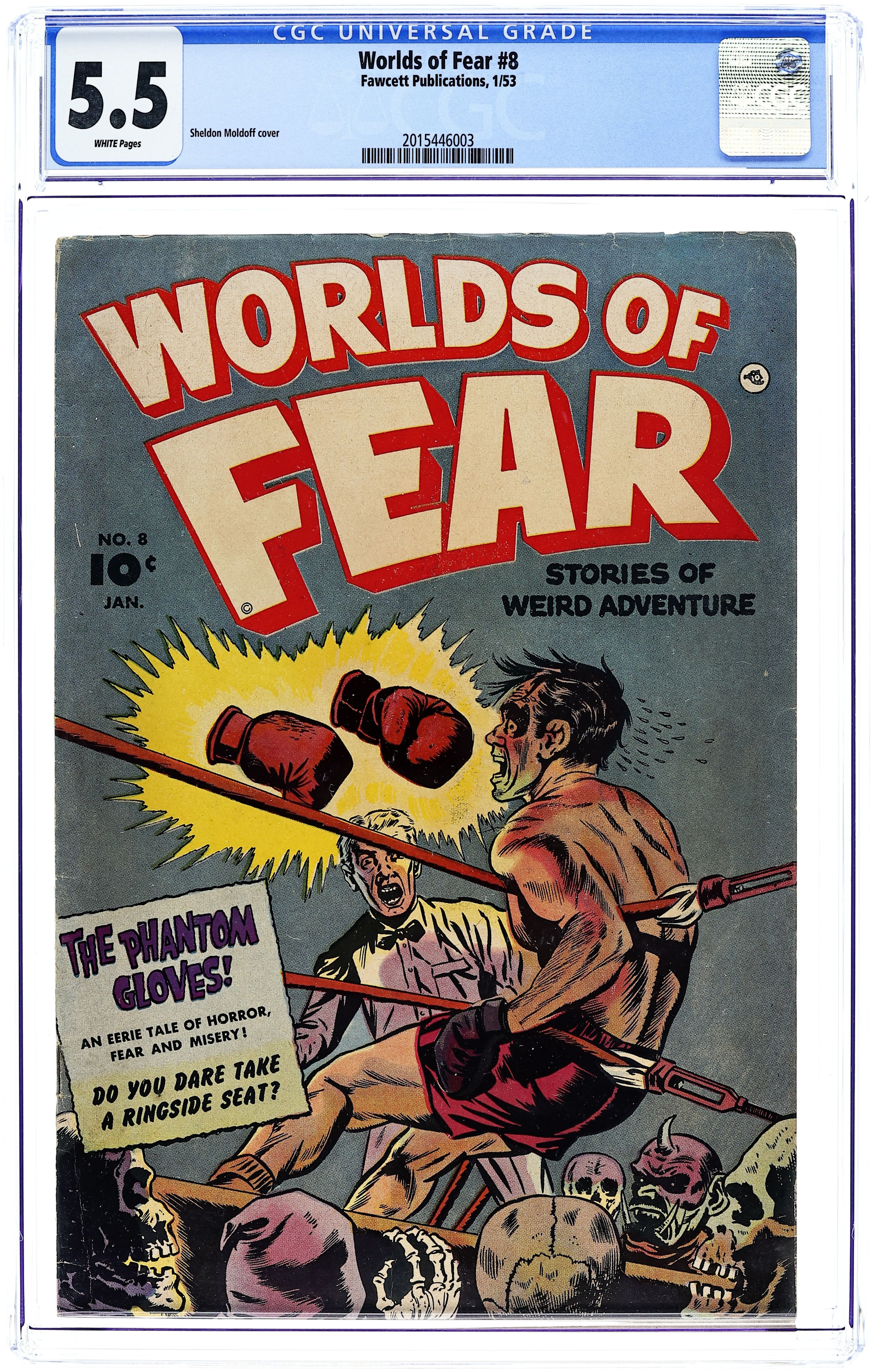 Stories and art by Sheldon Moldoff, Bob McCarty and John Martin. Pre-Code tales of horror from Fawcett, a publisher not normally noted for grue. Entomologist Dr. Jarrat develops "Metamorphosis syndrome" and finds himself turning into a different insect every night. An actor rebuilds the stage of his greatest performance, but also revives the ghost of his greatest enemy. An antiques dealer finds himself going backwards in time. An artist learns too much about the technique of a tortured master painter. A Death for a Death; The Stage Is Set for Murder; The Man Who Was Monday; The Locked Door. 32 pages, Full Color. Cover price $0.10.