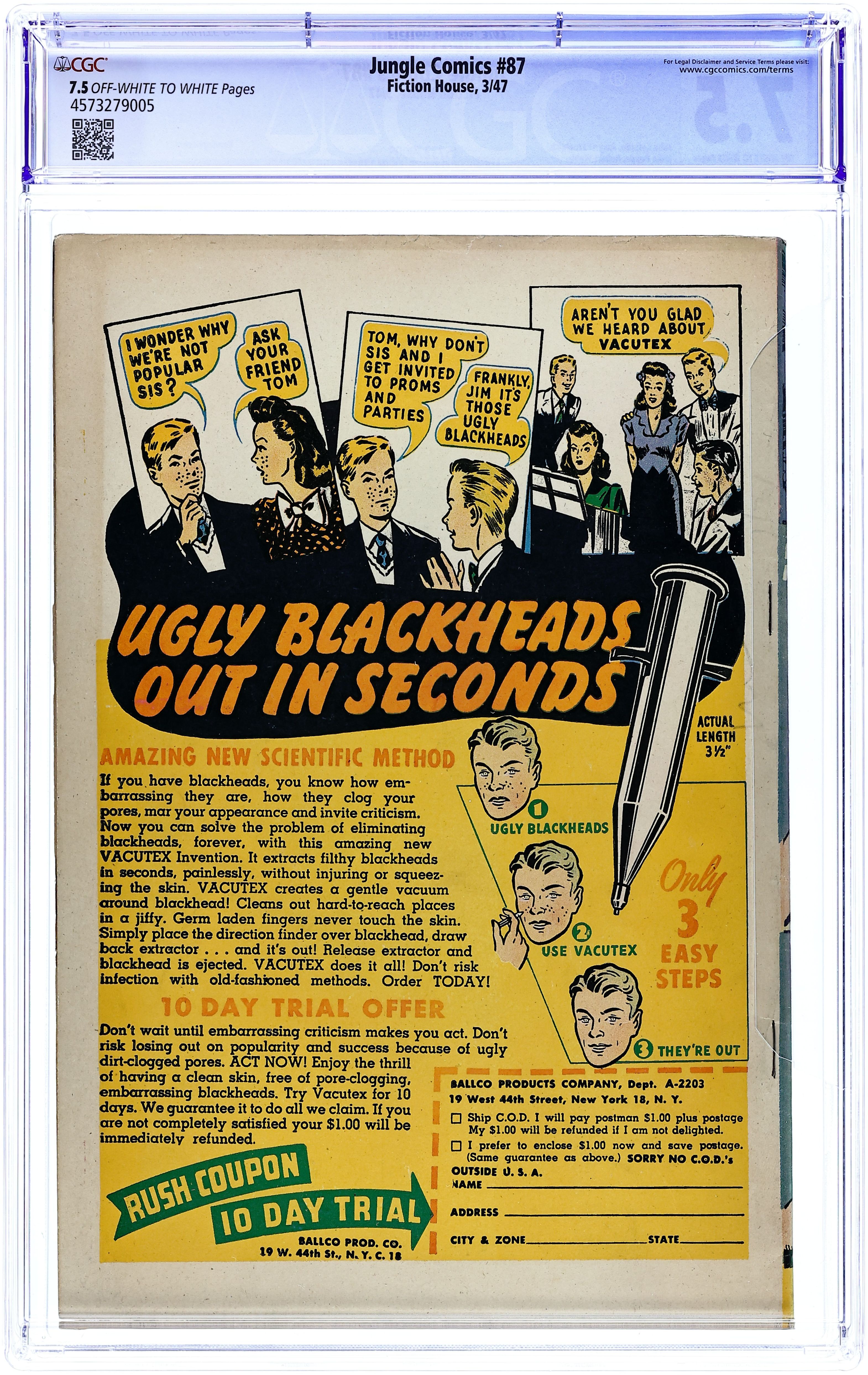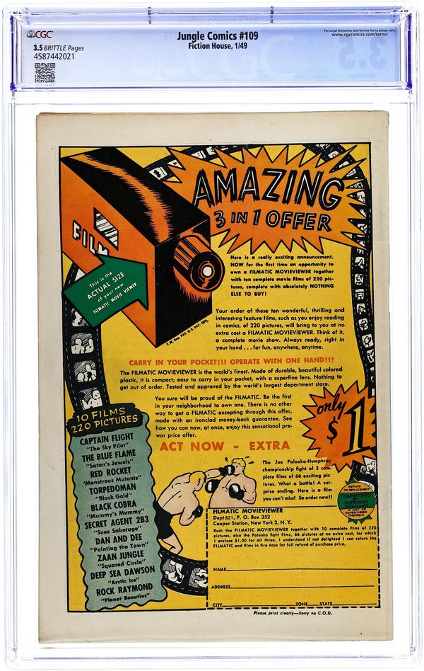 Published Apr 1948 by Fiction House.Jungle Comics (1940 Fiction House) 100 CGC 7.5