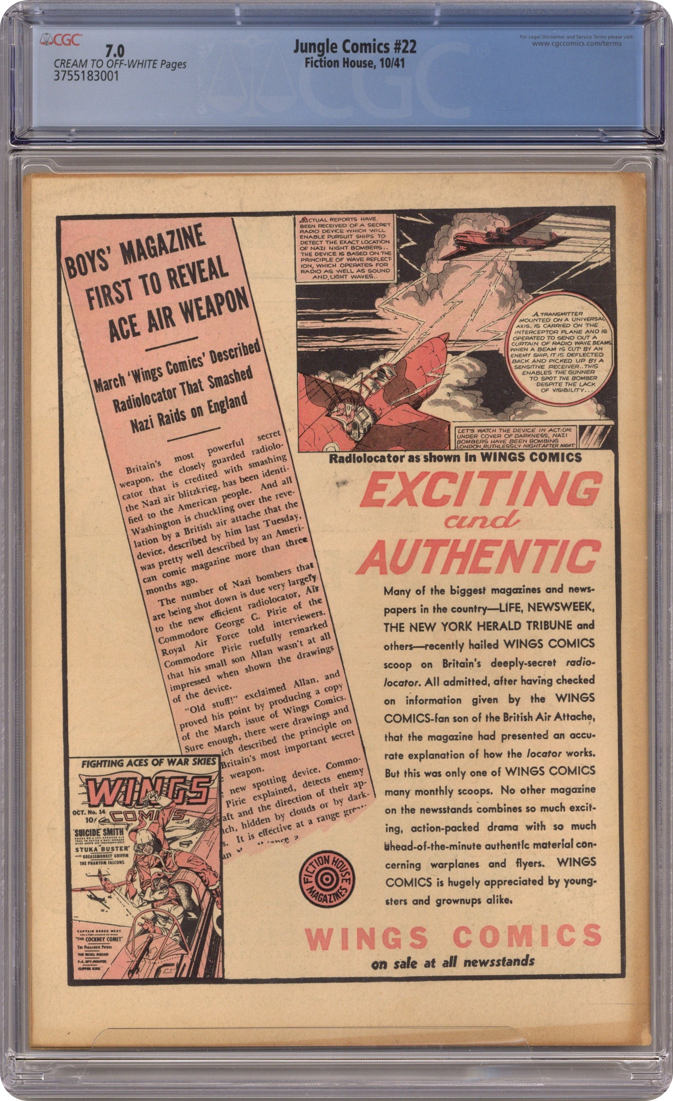 Published Dec 1946 by Fiction House.Jungle Comics (1940 Fiction House) 84 CGC 7.0