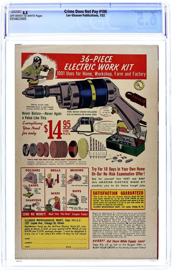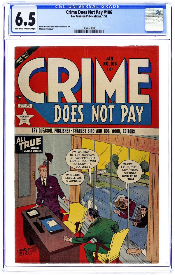 Published Jan 1952 by Lev Gleason.Crime Does Not Pay (1942-1955 Lev Gleason) 106 CGC 6.5