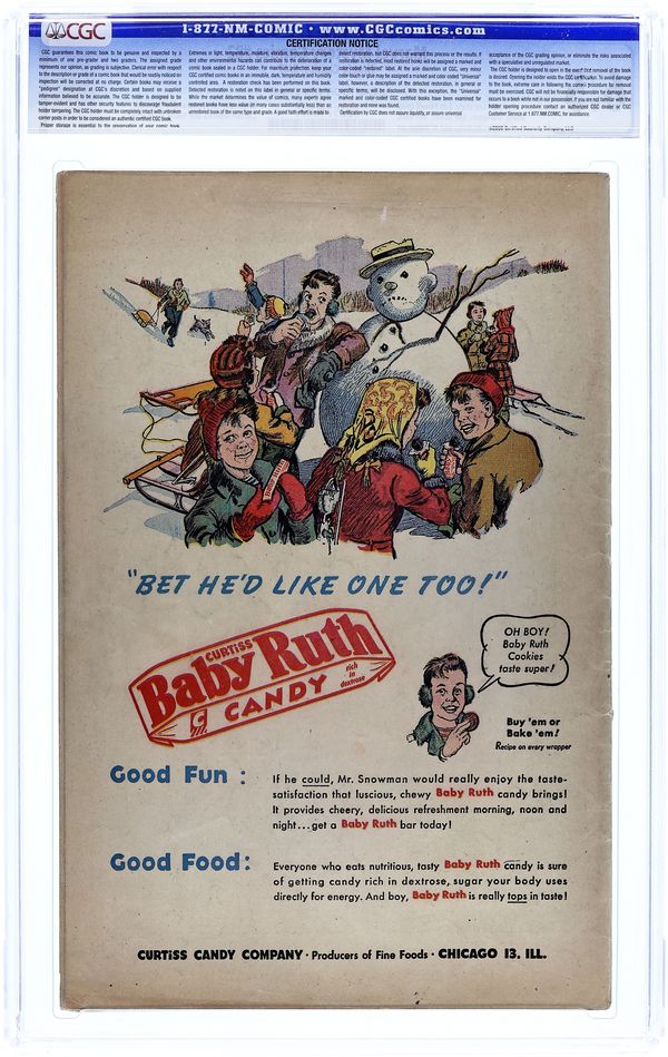 - Restoration includes: tear seal to cover, cover & centerfold reinforced, staples replaced.