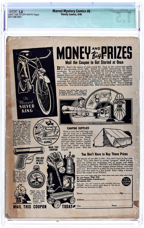 Marvel Mystery Comics (1939) 6 CGC 1.5 Qualified