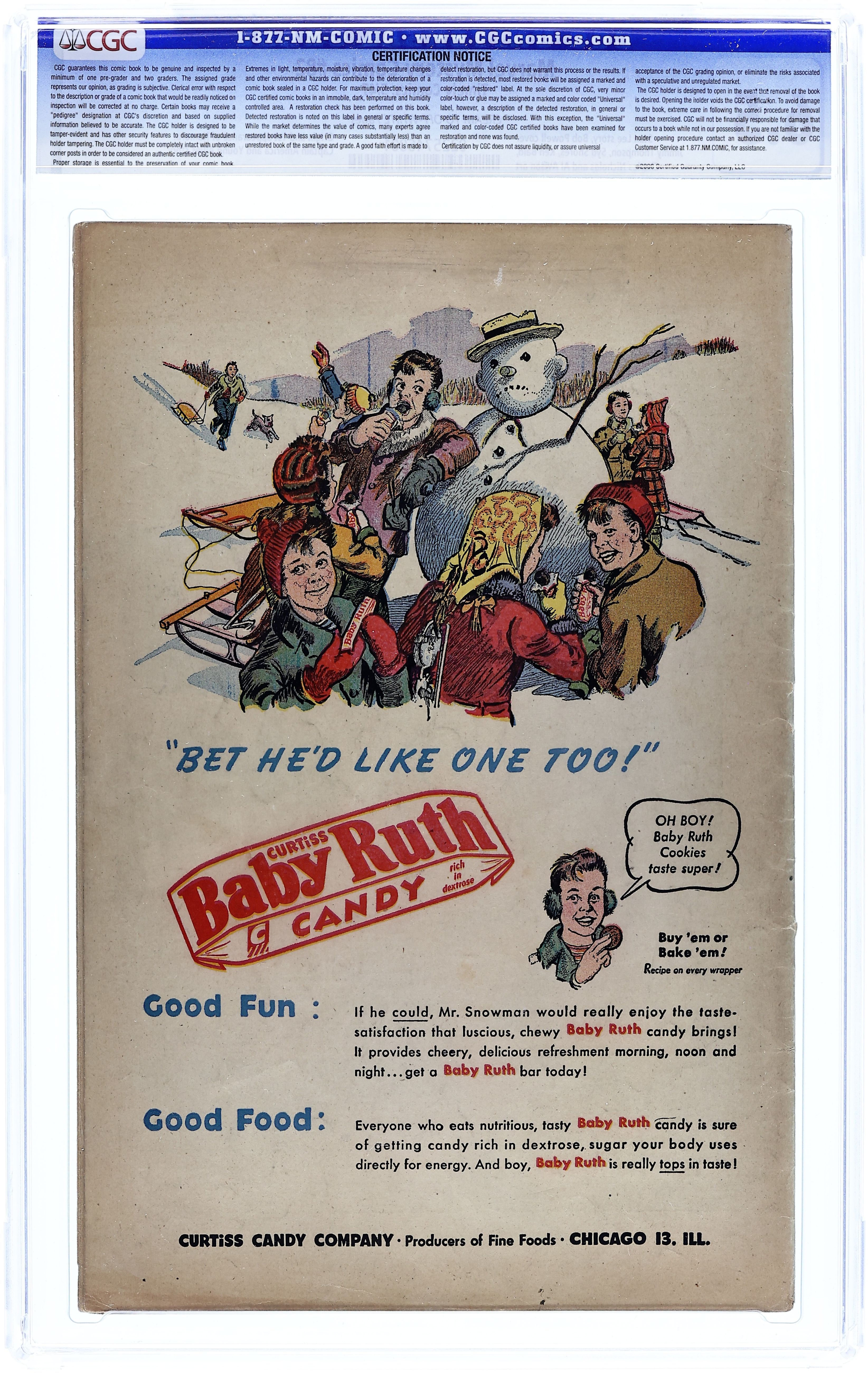 The Lethal Lollipops starring Human Torch, art by Ken Bald. Black Oil of Doom starring Sub-Mariner, pencils by Mike Sekowsky. Roll Out the Barrel text story. Doomed—One Town starring Sun Girl, art by Syd Shores. The Wound No Man Could See starring Captain America, inks by Al Gabriele. The Clown Who Couldn't Laugh starring Blonde Phantom, art by Al Gabriele. 52 pages. Cover price $0.10.