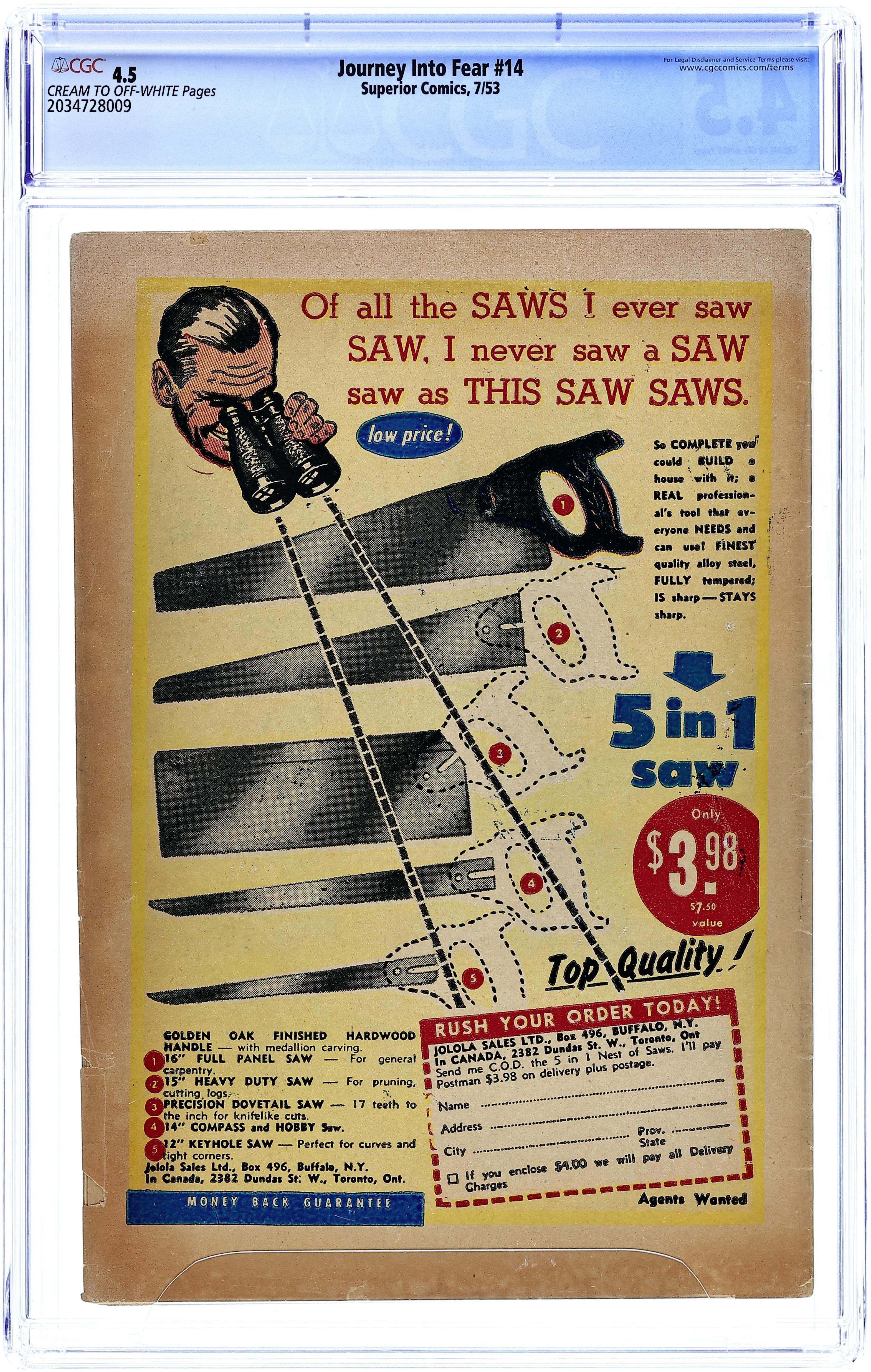 Journey into Fear (1951 Superior) comic books 1955 or before, graded by CGC