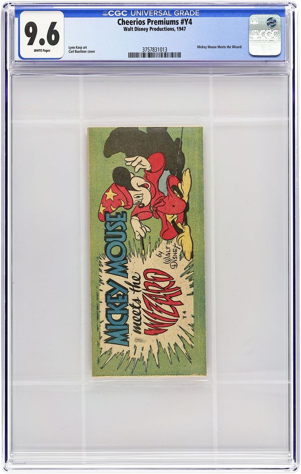 Mickey Mouse Meets The Wizard Mini Comic (1947), a Cheerios premium giveaway mini comic. Full color, Measures 3-1/4 x 6-7/8. #Y4. Copyright 1947. A Disney title published by Western Publishing. 32 pages.
