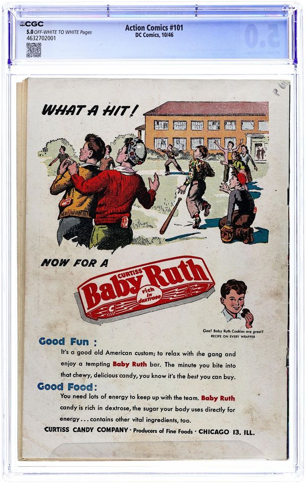 Last pre-comics code issue. Cover by Al Plastino. "The Challenge of Stoneman!", art by Al Plastino; An inventor's time machine takes him, Clark Kent, Lois Lane, Perry White, and a mobster to the distant past, where the crook assumes the identity of Stoneman and tries to control a tribe of cavemen. "The Great Jungle Baseball Game!" starring Congo Bill, art by Ed Smalle. Willie the Office Boy one-page story. Bebe one-page story by Henry Boltinoff. "Milkman in Space!" starring Tommy Tomorrow, art by Jim Mooney. 36 Pages, Full Color. $.10 Cover price $0.10.