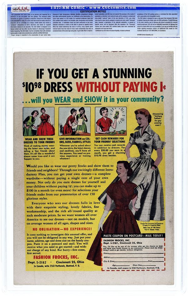 - Very small amount of dried glue on spine of cover. Very minor amount of color touch on cover. From the Collection of "Crazy Ed's Comics". Includes paperwork from the Crazy Ed's Comic Collection.