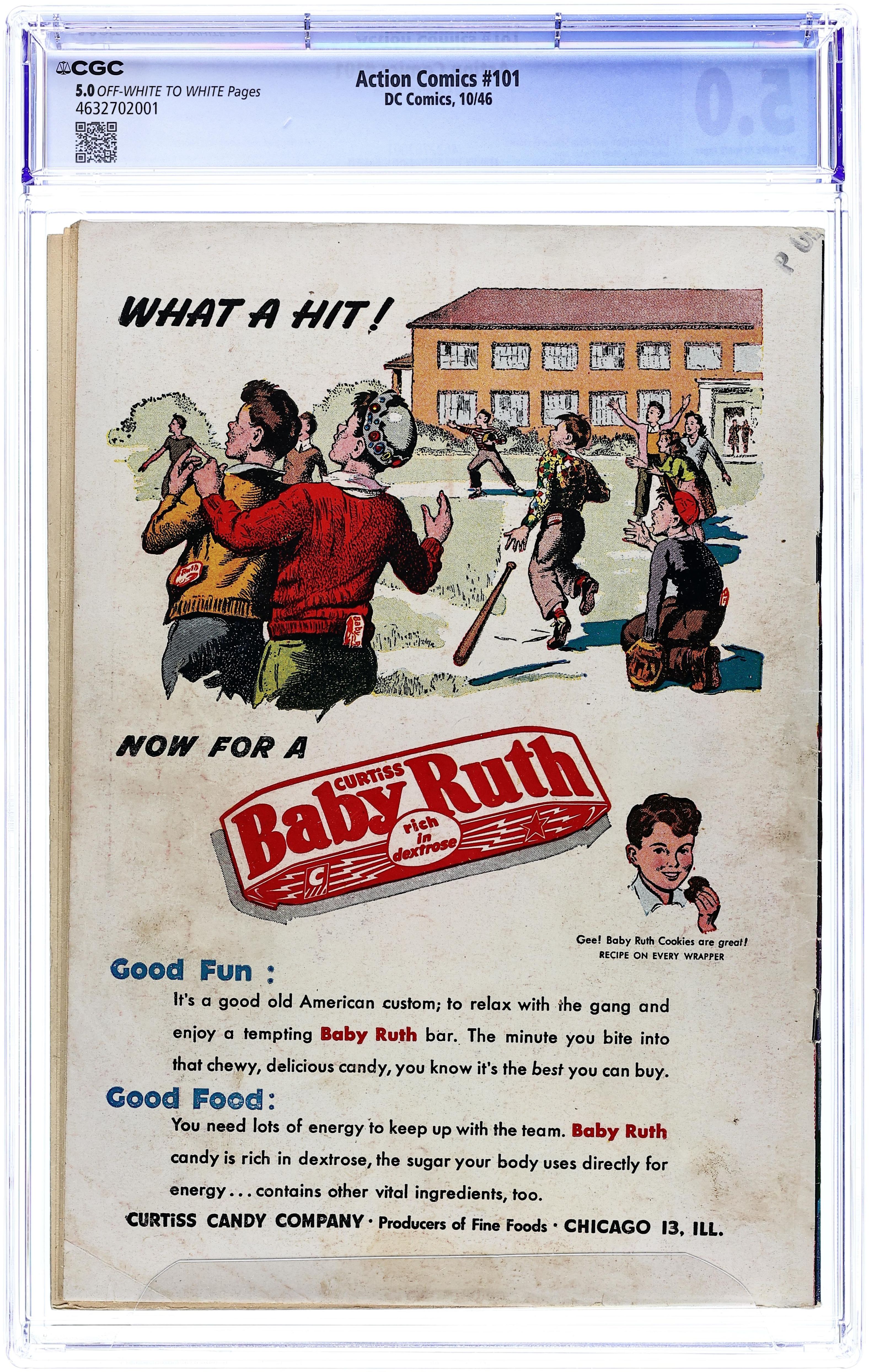 Cover art by Wayne Boring and Stan Kaye. The Road to Happiness starring Superman, pencils by Ira Yarbrough, inks by Stan Kaye. The Postman Never Rings starring Zatara, script by Joe Samachson, art by W. F. White. The Sea of Missing Ships starring Congo Bill, script by Alvin Schwartz, art by Ed Smalle. The Policeman's Rival starring Hayfoot Henry, script by Alvin Schwartz, art by Stan Kaye. The Rainbow Man's Return starring Vigilante, art by George Roussos. 52 Pages, Full Color. $.10 Cover price $0.10.