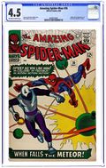Cover art by Steve Ditko. Second appearance of Mary Jane (cameo; face not shown) in Just a Guy Named Joe!, script by Steve Ditko (Plot) and Stan Lee, art by Steve Ditko; Average joe, Joe Smith, fails at being a fighter and tries his hand at acting; Dressed up as a robotic monster, he is zapped with electricity and chemicals which causes him to go on a violent spree against those who doubted his abilities; Meanwhile, Norman Osborn puts a price on Spidey's head and our hero is plagued with goons trying to bump him off; Pete narrowly misses meeting Mary Jane. This is Ditko's final issue of Spider-Man. Reprinted in Marvel Tales # 177. 36 pgs. $0.12. Cover price $0.12.