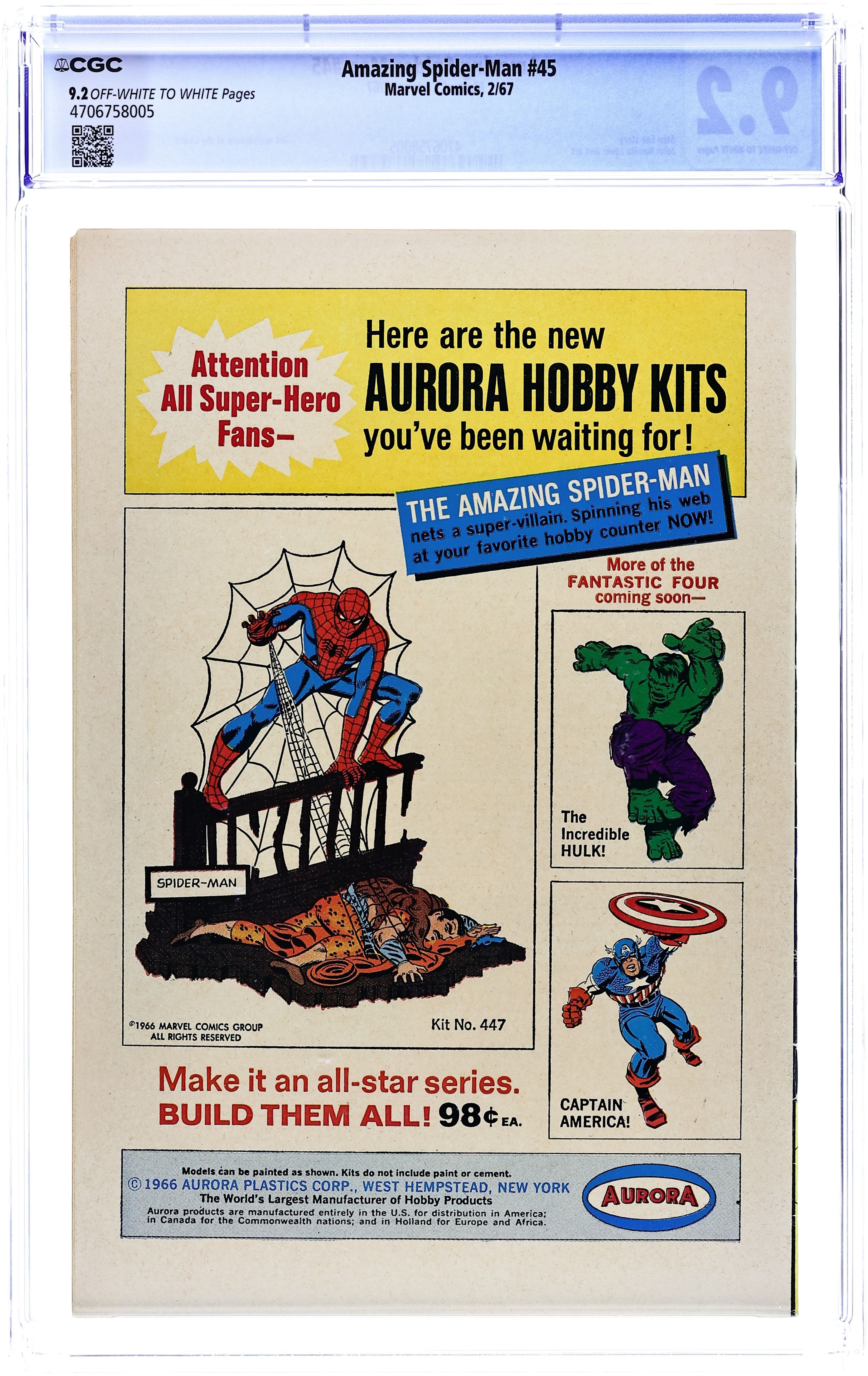 Tags: Marvel Legacy Numbering: Amazing Spider-Man (part 45), Spider-ManAmazing Spider-Man (1963 1st Series) 45 CGC 9.0