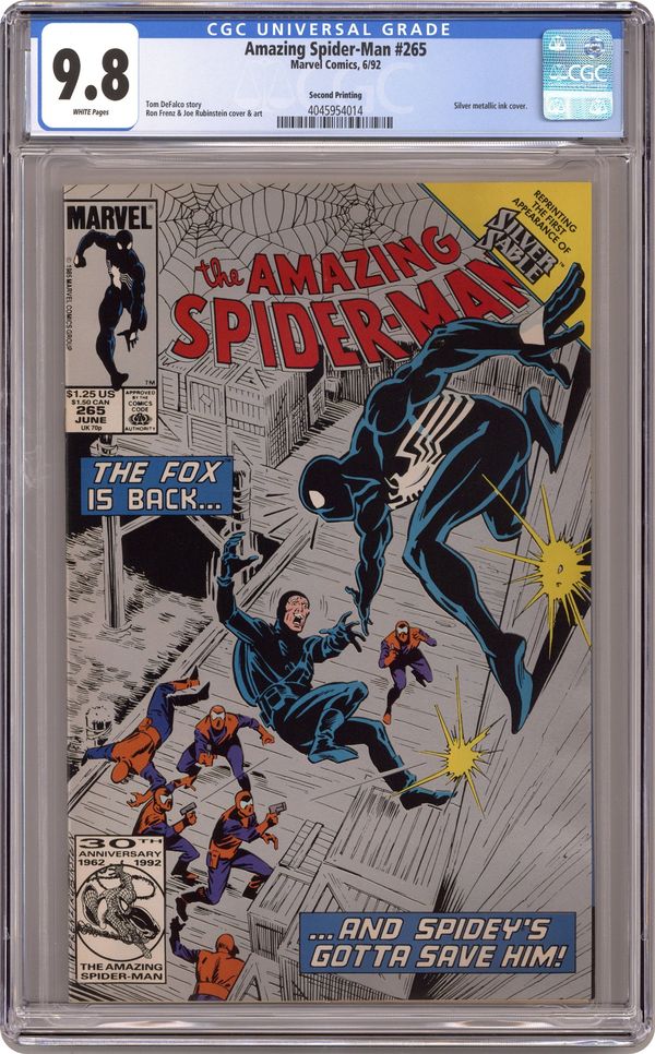 2nd printing (Silver inks in background). 1st appearance of Silver Sable. Script by Tom DeFalco. Pencils by Ron Frenz. Inks by Joe Rubinstein. Cover by Ron Frenz and Joe Rubinstein. "After the Fox!". 36 pgs. Cover price $1.25.