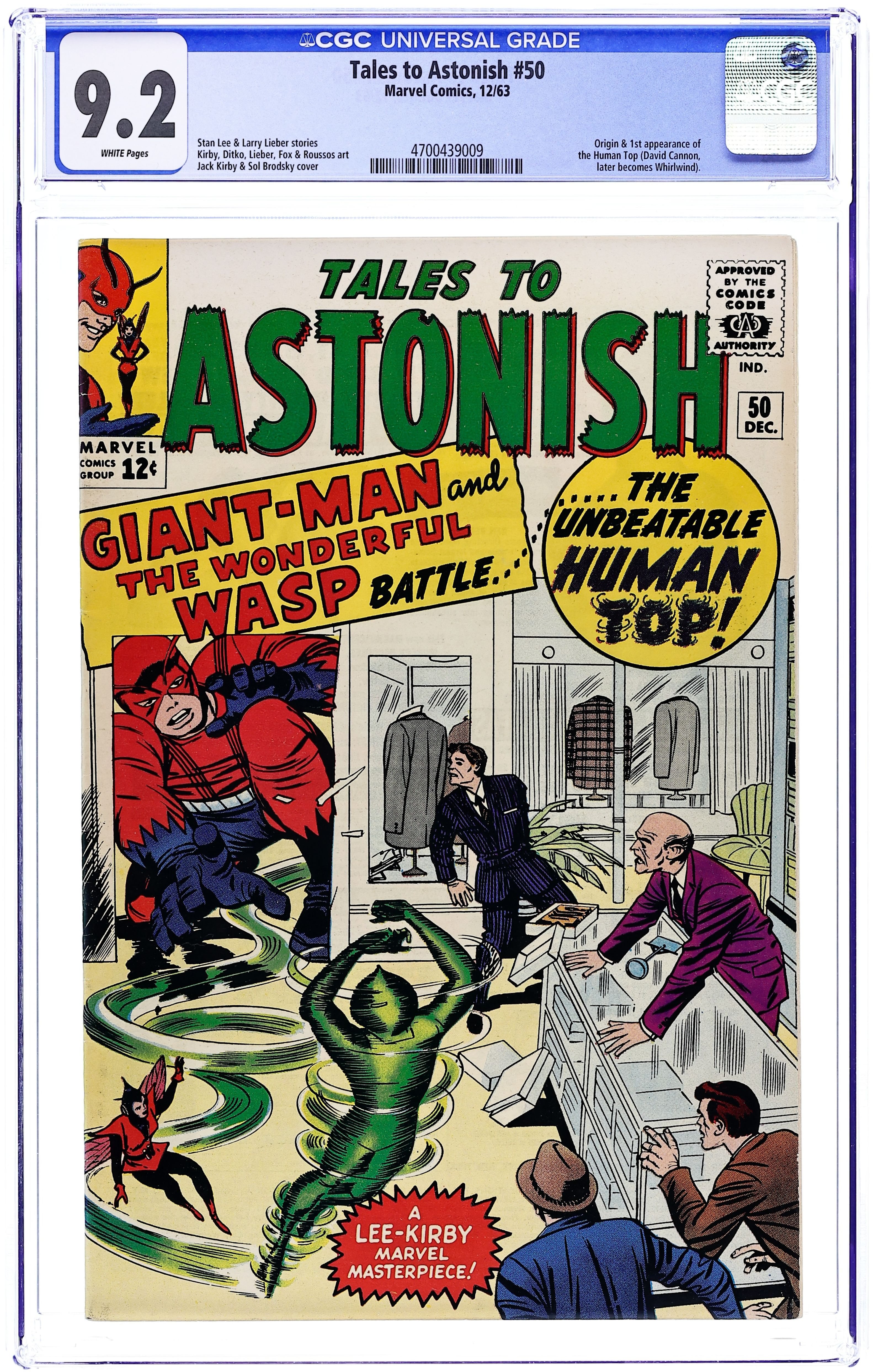 Cover by Jack Kirby and Sol Brodsky. The Human Top!, script by Stan Lee, art by Jack Kirbym, Steve Ditko, and Don Heck; Henry Pym follows the crime spree of the Human Top in the newspapers but the Wasp convinces Henry to go after him as Giant-Man. Mystery Trip text story, art by Joe Maneely; Tommy's uncle returns from a space journey needing to re-learn how to walk on earth instead of floating. The Secret of Sagattus!, script by Stan Lee and Larry Lieber, art by Larry Lieber and Matt Fox; A wise king listens only to the advice of a hunchback, causing the jealous nobles to murder the hunchback. No Ending!, script by Stan Lee and Larry Lieber, art by Larry Lieber; A dictator is tormented by dreams of running on a treadmill suspended high in the sky. 36 pgs., full color. $0.12. Cover price $0.12.
