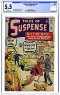 Cover pencils by Jack Kirby, inks by Sol Brodsky. Iron Man gets a snazzy new costume in "The Mysterious Mr. Doll!", script by Stan Lee, pencils by Steve Ditko, inks by Dick Ayers; Mister Doll uses magic dolls to take over whole companies; Iron Man stops him with the help of a new suit of armor. "The Pact," art by Joe Maneely; An historian writing about the trial and execution of his ancestor for witchcraft interviews the only remaining party concerned in the case: the Devil. "Kraddak," script by Stan Lee (plot) and Larry Lieber (script), pencils by Larry Lieber, inks by George Roussos (as G. Bell); An alien tells a greedy mine owner that he will be killed in a fall; The mine owner hides at the lowest possible point in his mine. 36 pgs., full color. $0.12. Cover price $0.12.